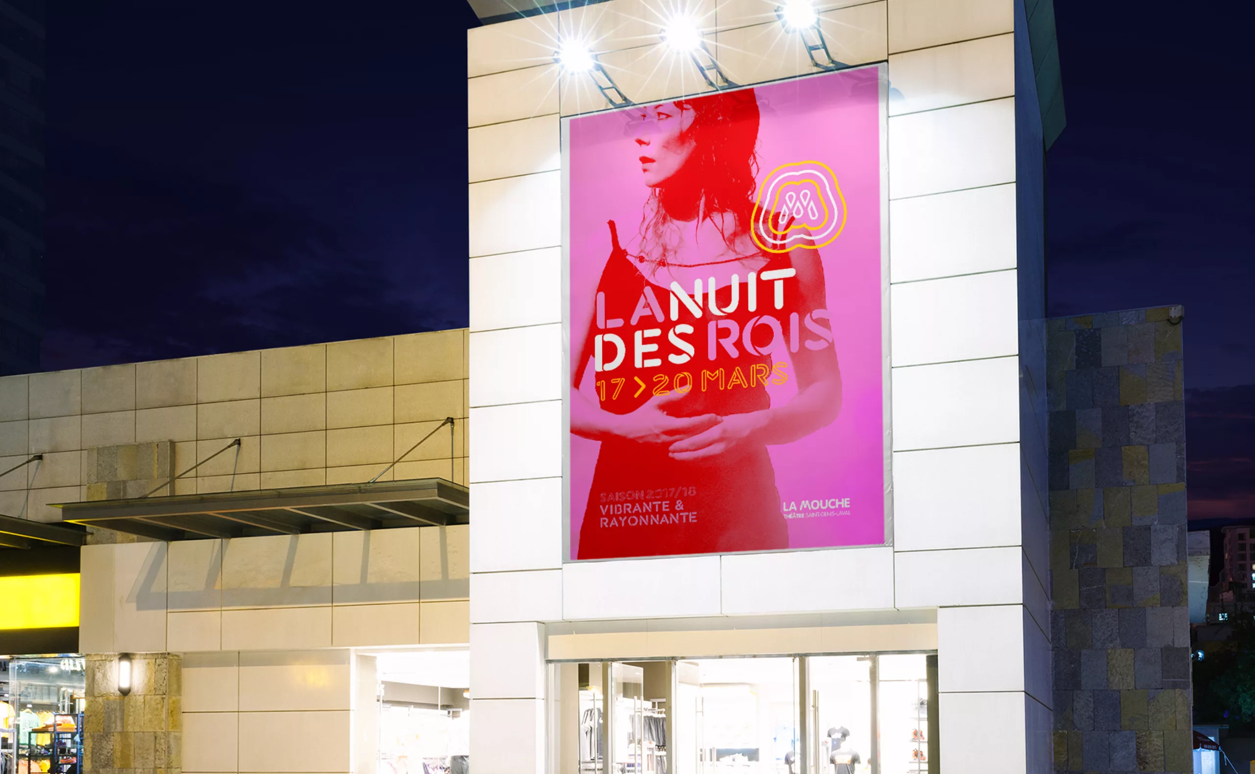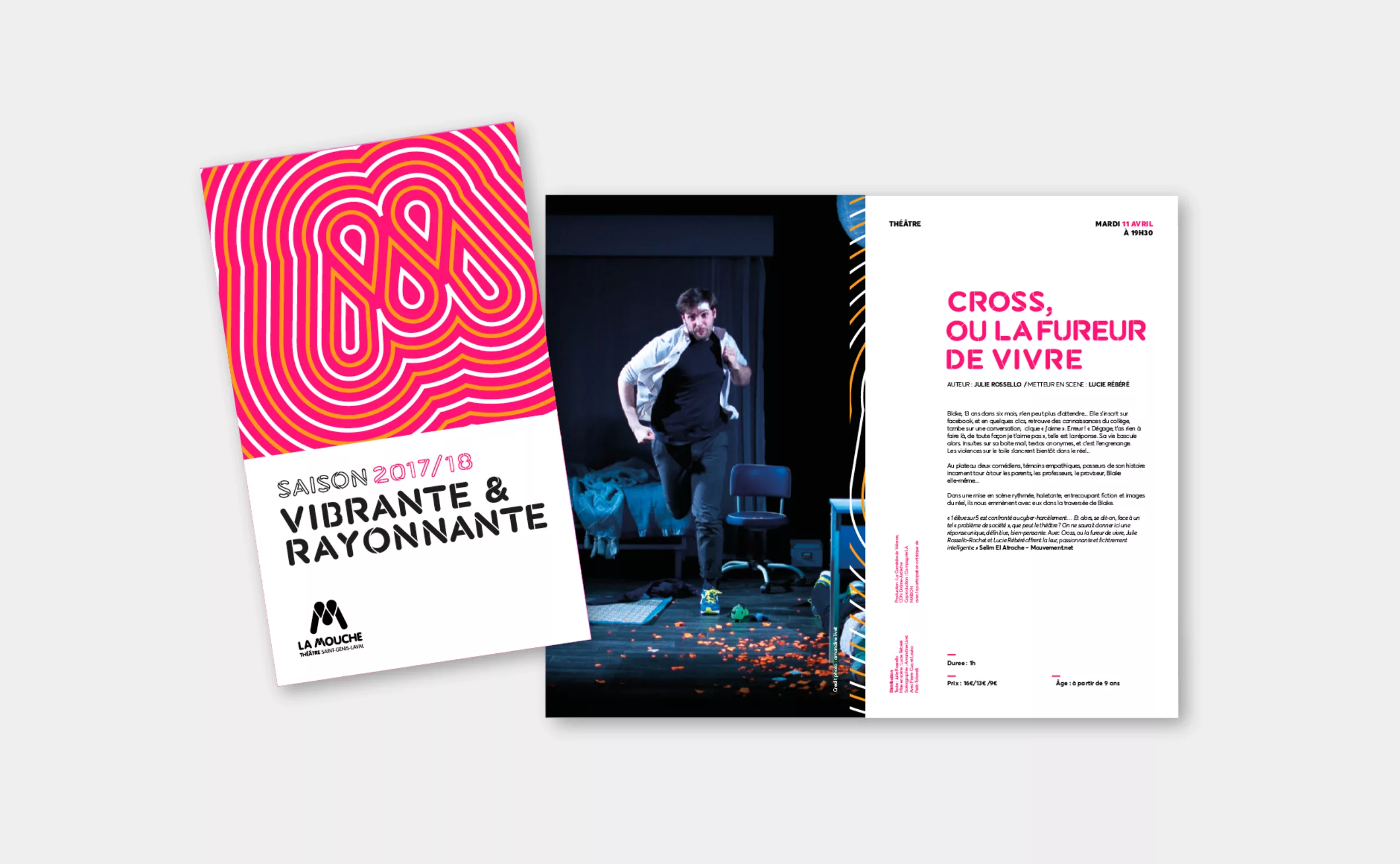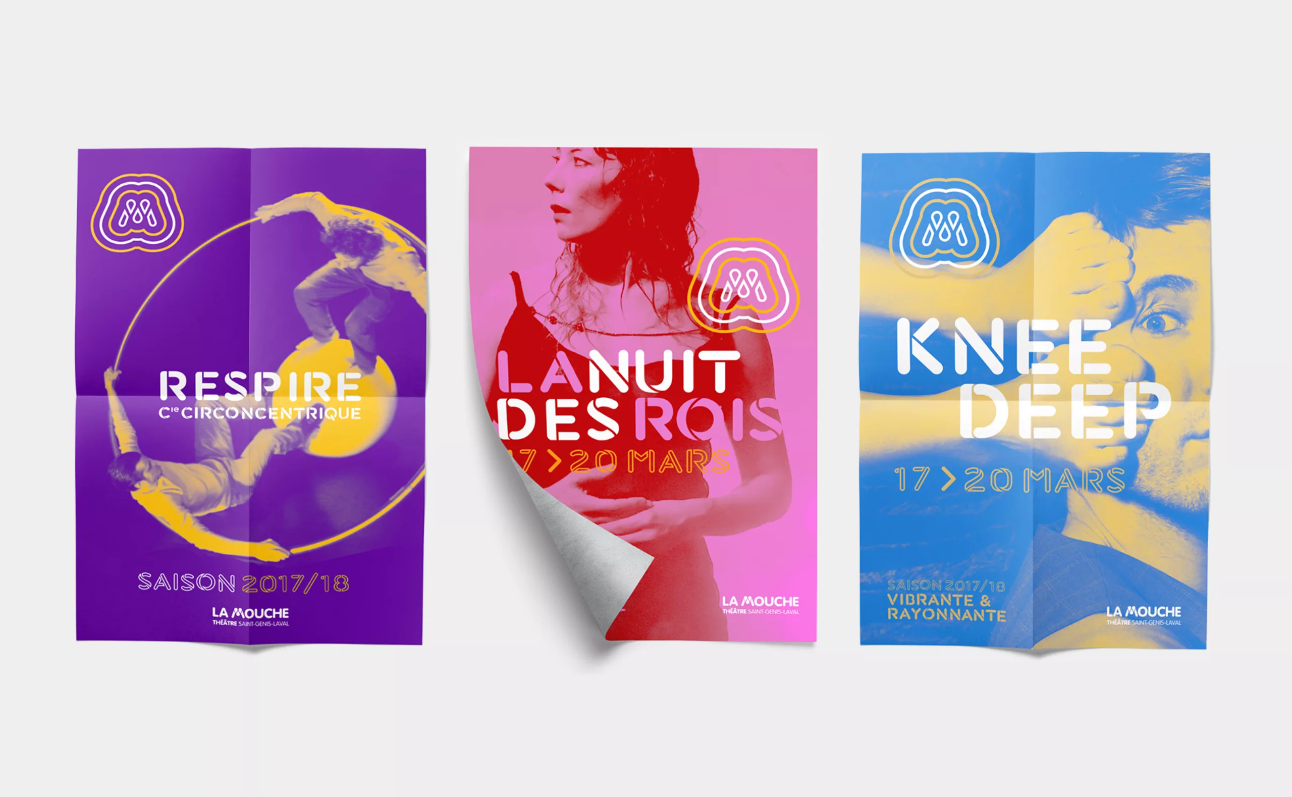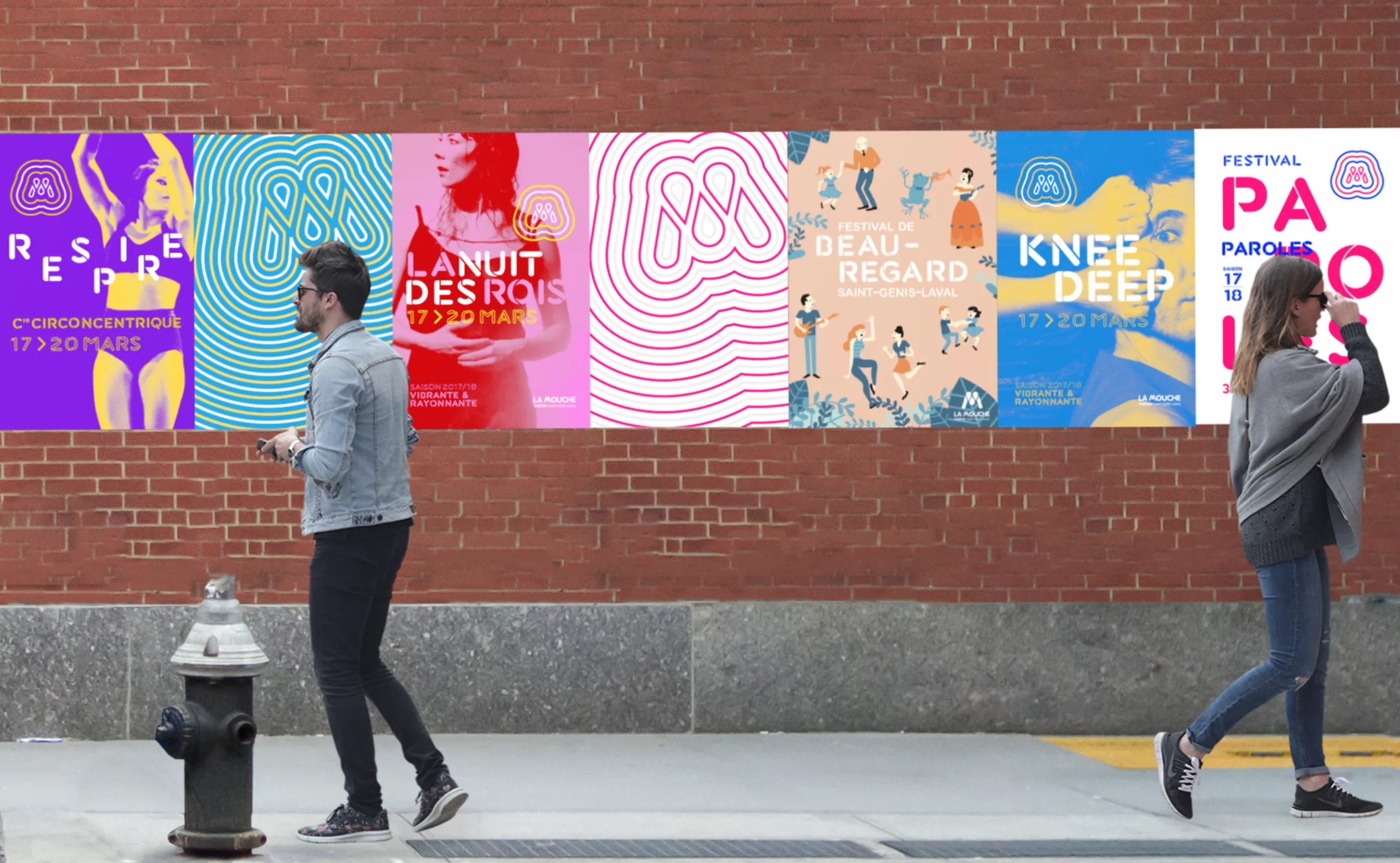 Le nouveau système visuel s’accompagne de la création d’un caractère typographique sur-mesure dont le dessin présente des ouvertures caractéristiques héritées du style graphique du monogramme “M” du logotype “LA MOUCHE”. Ce lettrage est destiné à être utilisé pour composer des éléments de titrage sur l’ensemble des supports de communication du centre culturel. C’est un code visuel flexible qui permet de créer un territoire de marque efficace, original et identifiable.