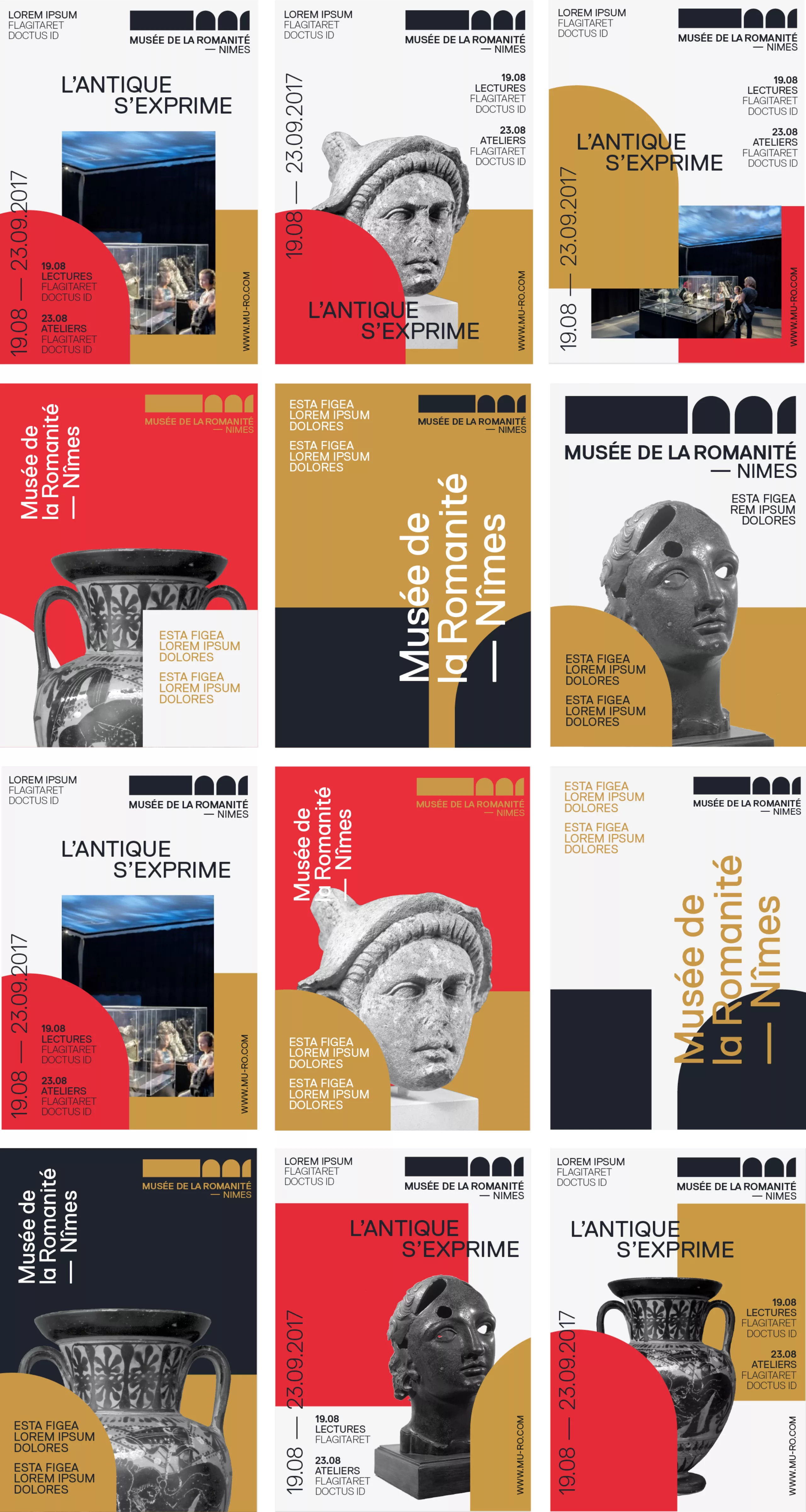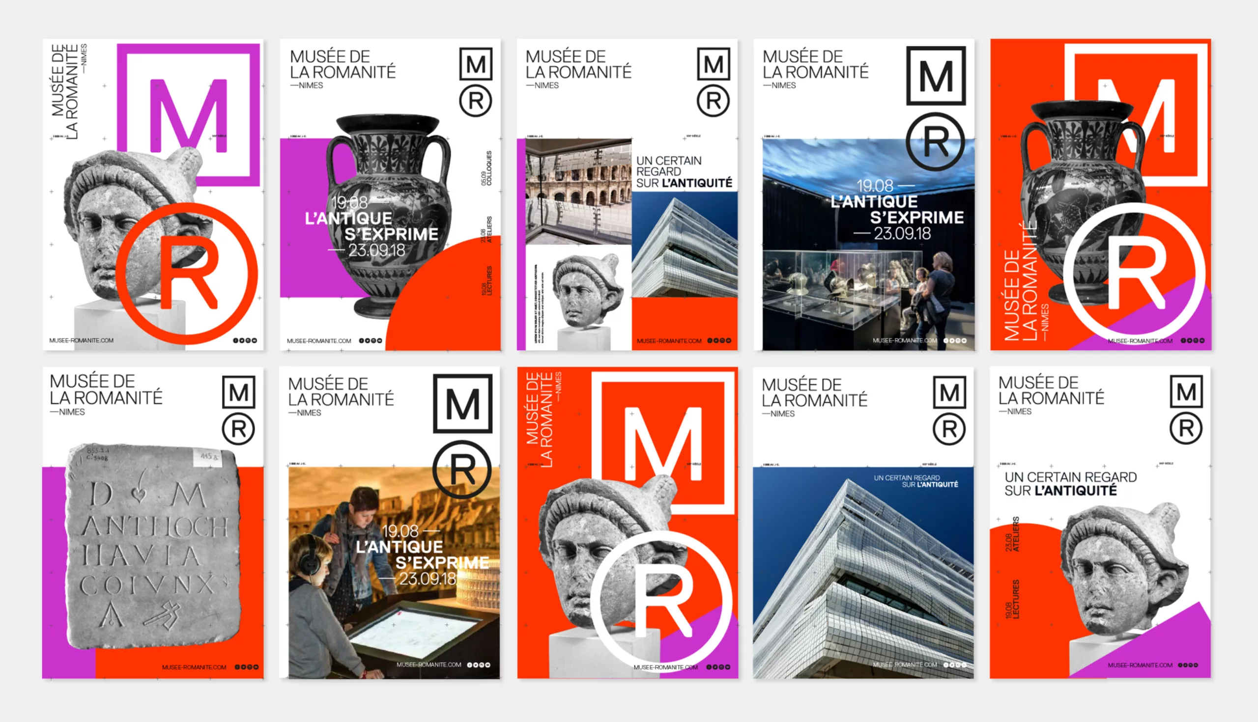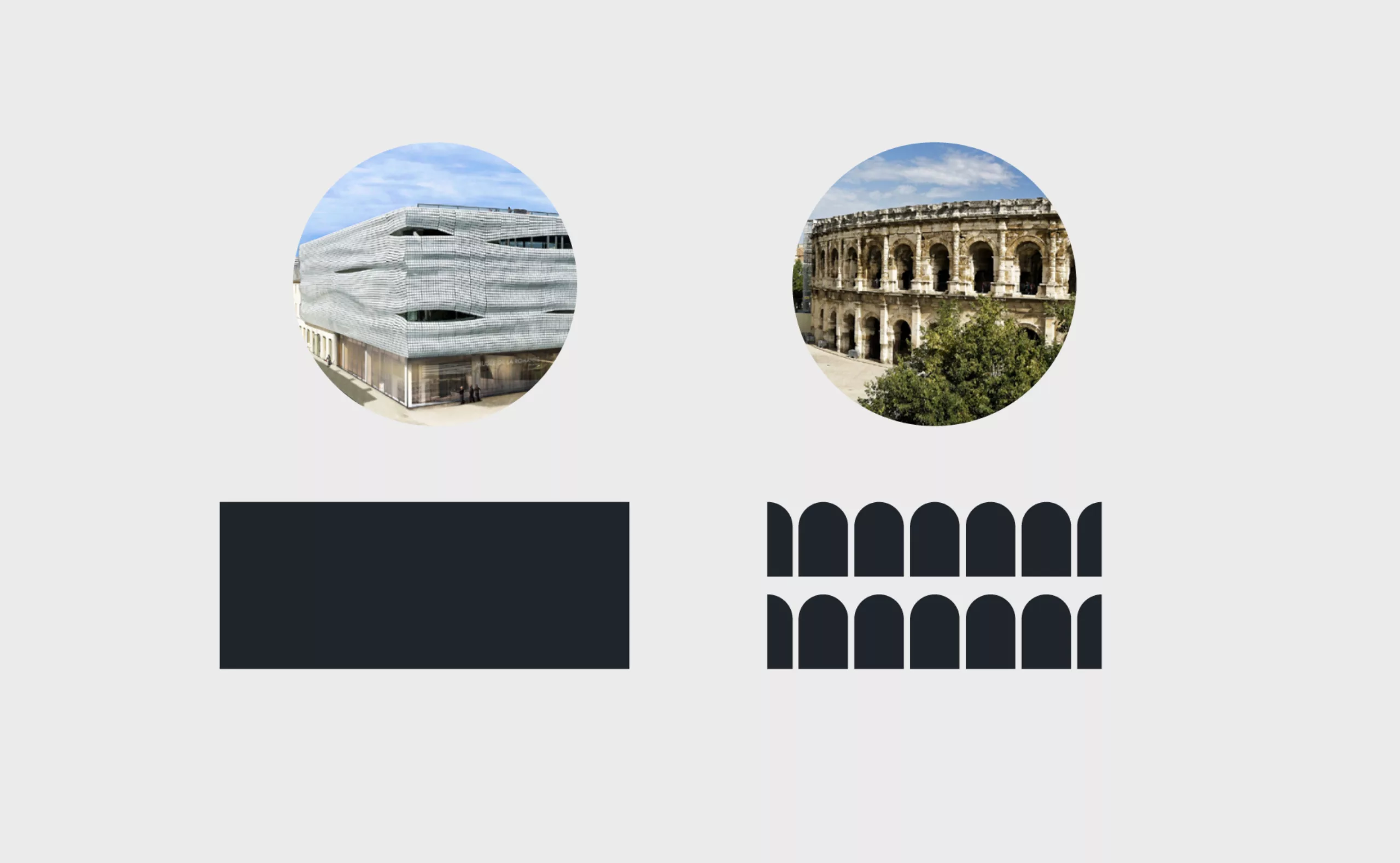 En 2018, nous avions eu l’occasion de nous exprimer sur la création d’une identité visuelle pour le Musée de la Romanité à Nîmes. Un musée qui depuis a ouvert ses portes aux visiteurs et qui est situé juste en face des célèbres arènes romaines. Malheureusement, les équipes du projet en charge de cet appel d’ofre ne semblaient pas “una-Nîmes” sur nos propositions. Malgré cela, nous vous proposons de découvrir nos recherches…