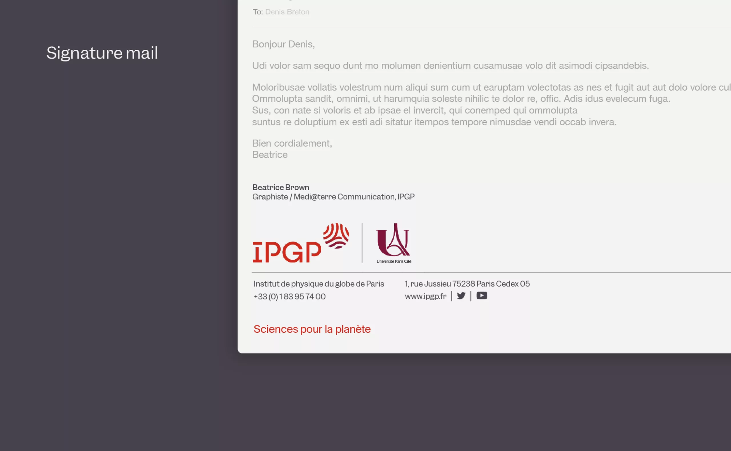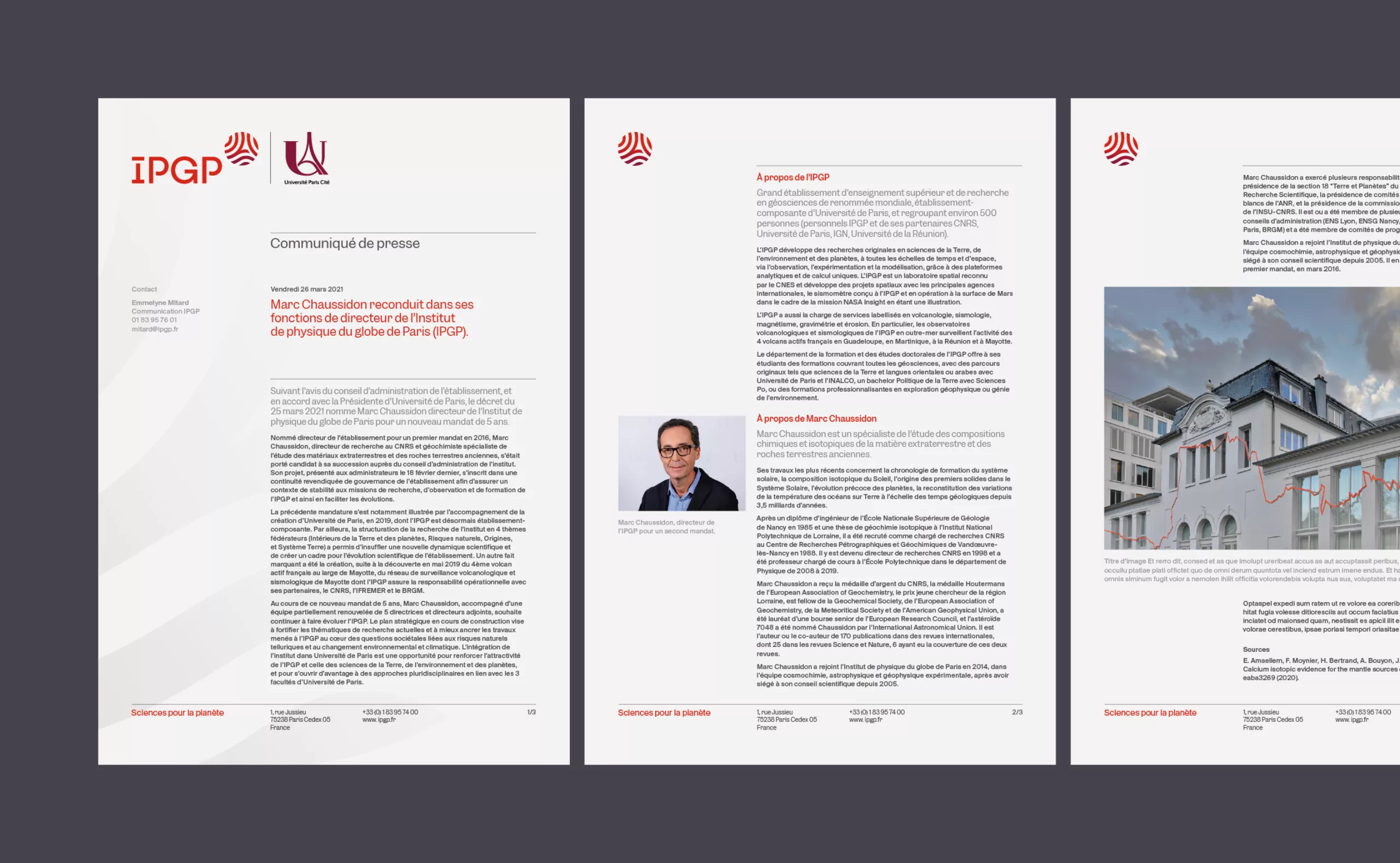 À l’occasion des 100 ans de sa création, l’IPGP souhaitait mener une réflexion sur la refonte de son logo et plus largement sur son identité visuelle. Le précédent logo avait 30 ans d’existence et l’objectif était de le rendre plus lisible, plus visible et intemporel pour gagner en crédibilité.
