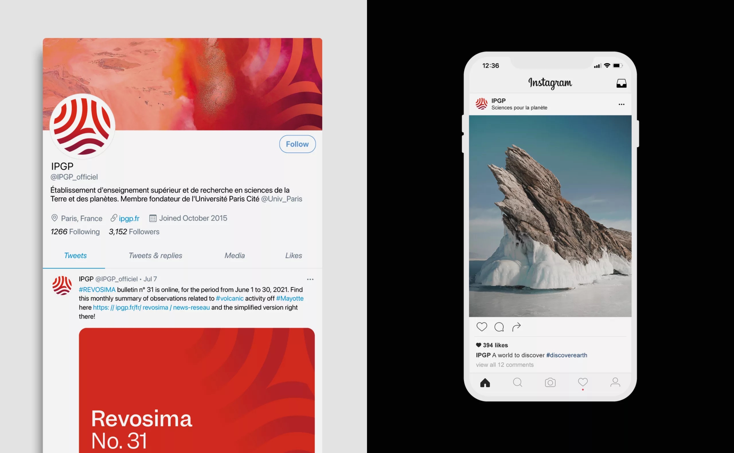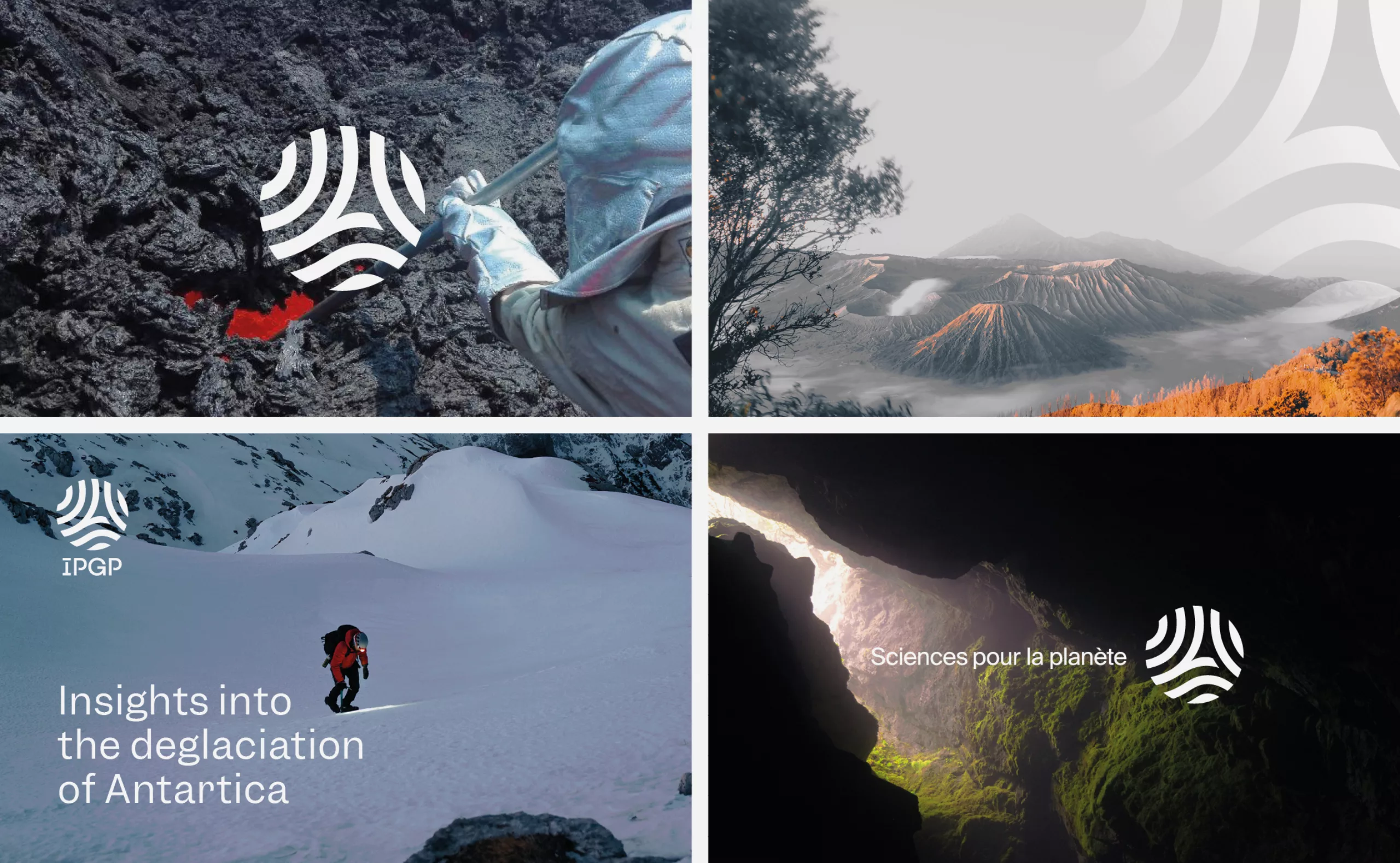 L’agence Graphéine a accompagné IPGP dans la création de sa nouvelle identité visuelle et la mise en place de sa charte graphique. Le nouveau logotype modernise l’identité précédente en lui donnant plus d’impact et de flexibilité, tout en respectant l’ADN qui a permis de construire sa notoriété. Ce travail de cohérence a été poussé jusqu’à l’harmonisation des logos de ses observatoires volcanologiques et sismologiques