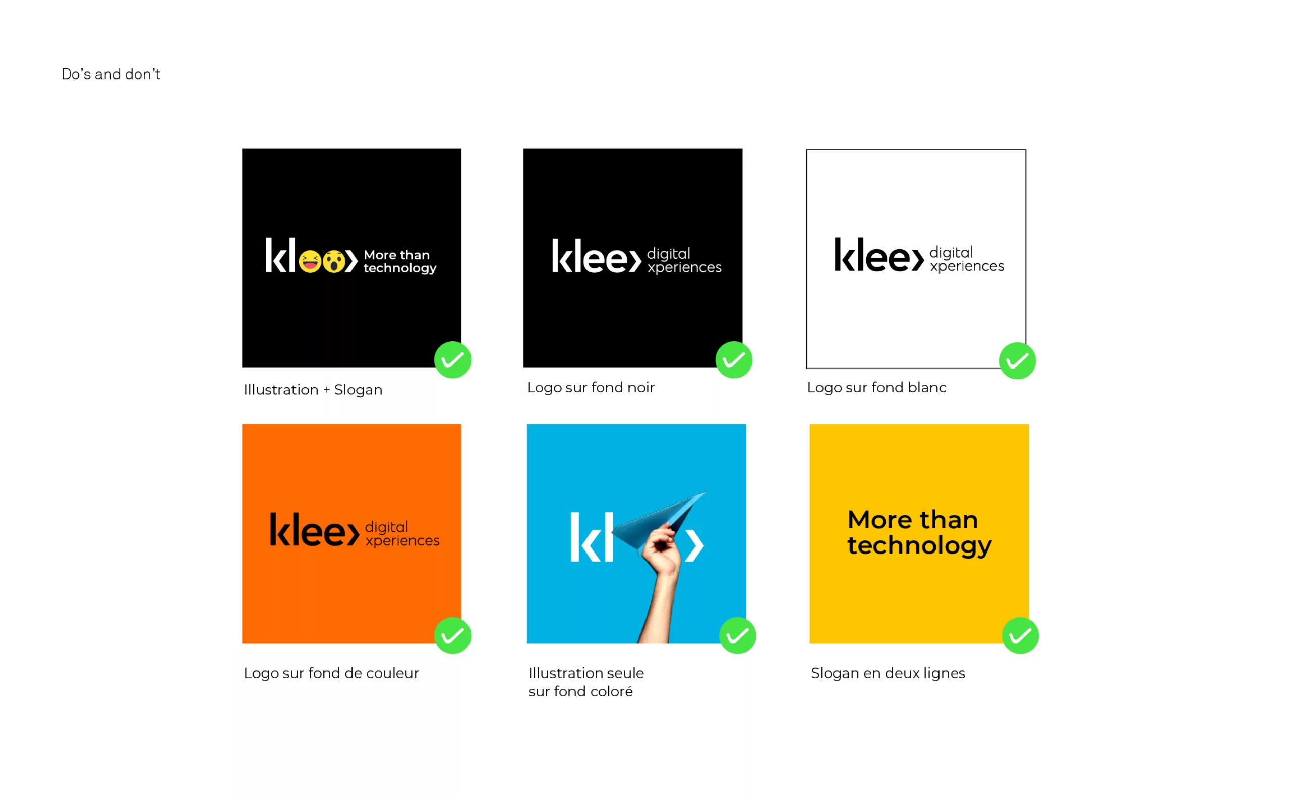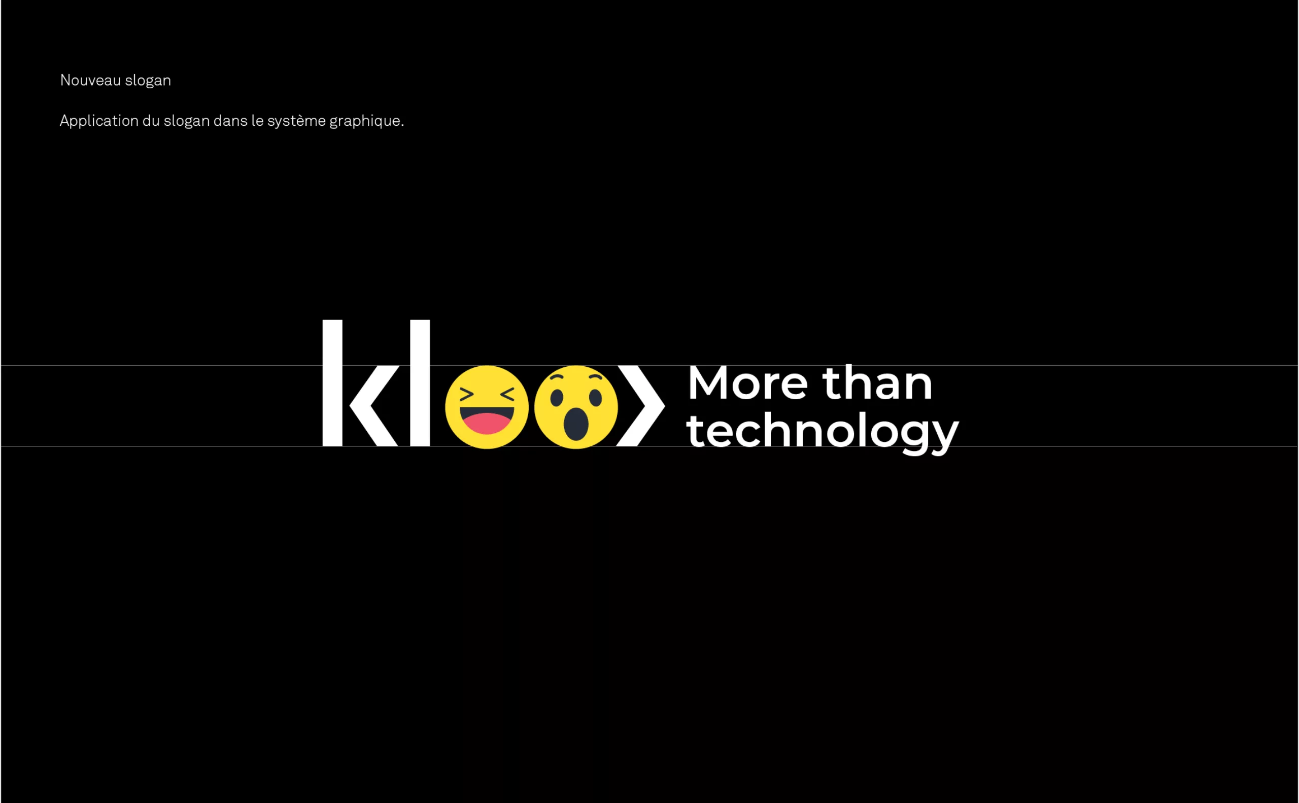 La signature « More than Technology » et une charte éditoriale détermine le discours de la marque, son registre d’expression et son ton de voix. Grâce à la création de cette identité visuelle, Klee Group consolide sa légitimité d’agence conseil en solutions digitales. C’est une nouvelle stratégie de marque rassurante et innovante avec laquelle Klee Group ambitionne de séduire les entreprises du secteur privé.