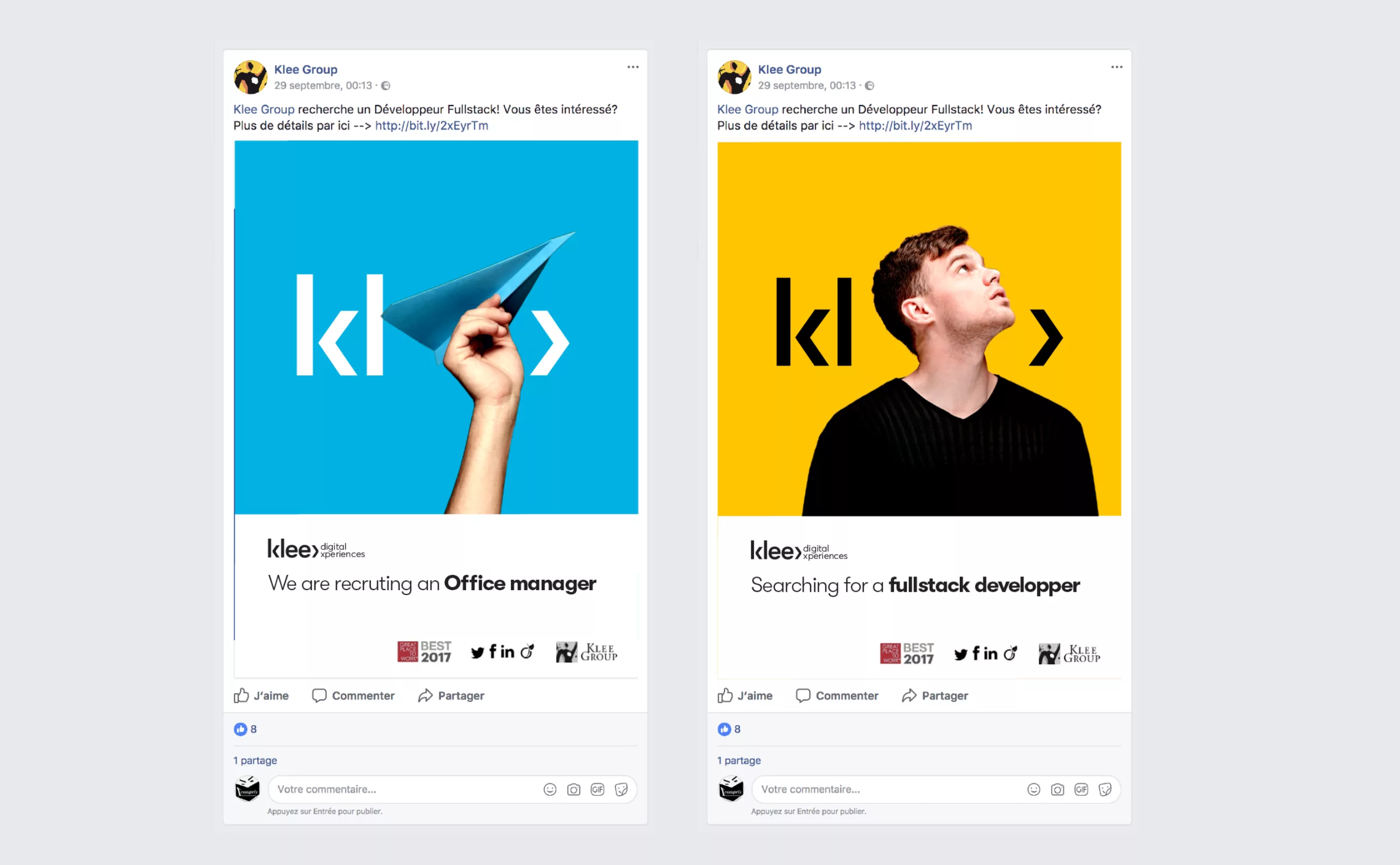 C’est dans ce contexte que Graphéine a accompagné Klee Group en septembre 2017. Nous avons définit la stratégie de marque et créé l’identité visuelle de son nouveau service 360 intitulé « Klee Digital ».