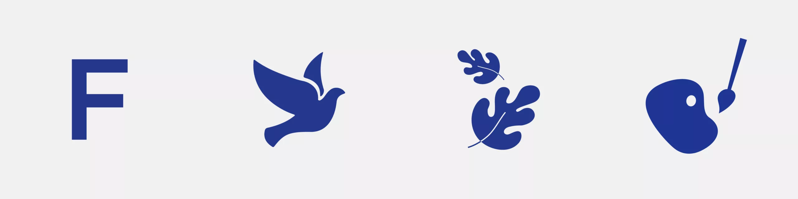 Ce logo est en premier lieu une lettrine “F”. Le fait d’agrandir et de décorer la première lettre d’un nom permet d’apporter la singularité tout en bénéficiant de l’effet visuel de la lettrine qui nous invite à rentrer dans la lecture d’un texte ou d’un message.