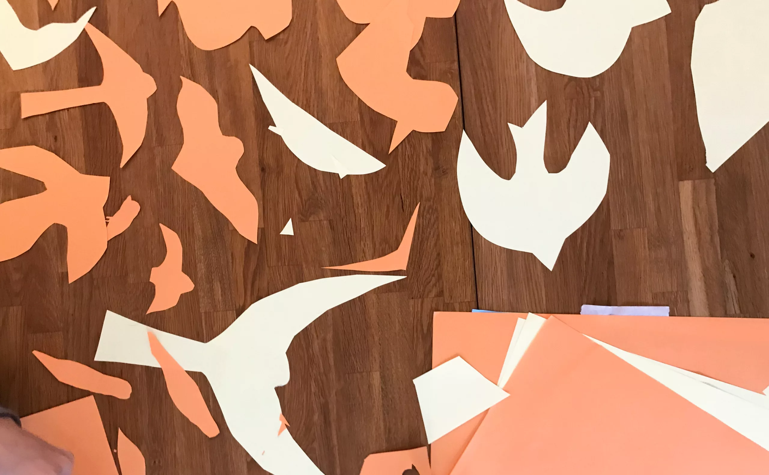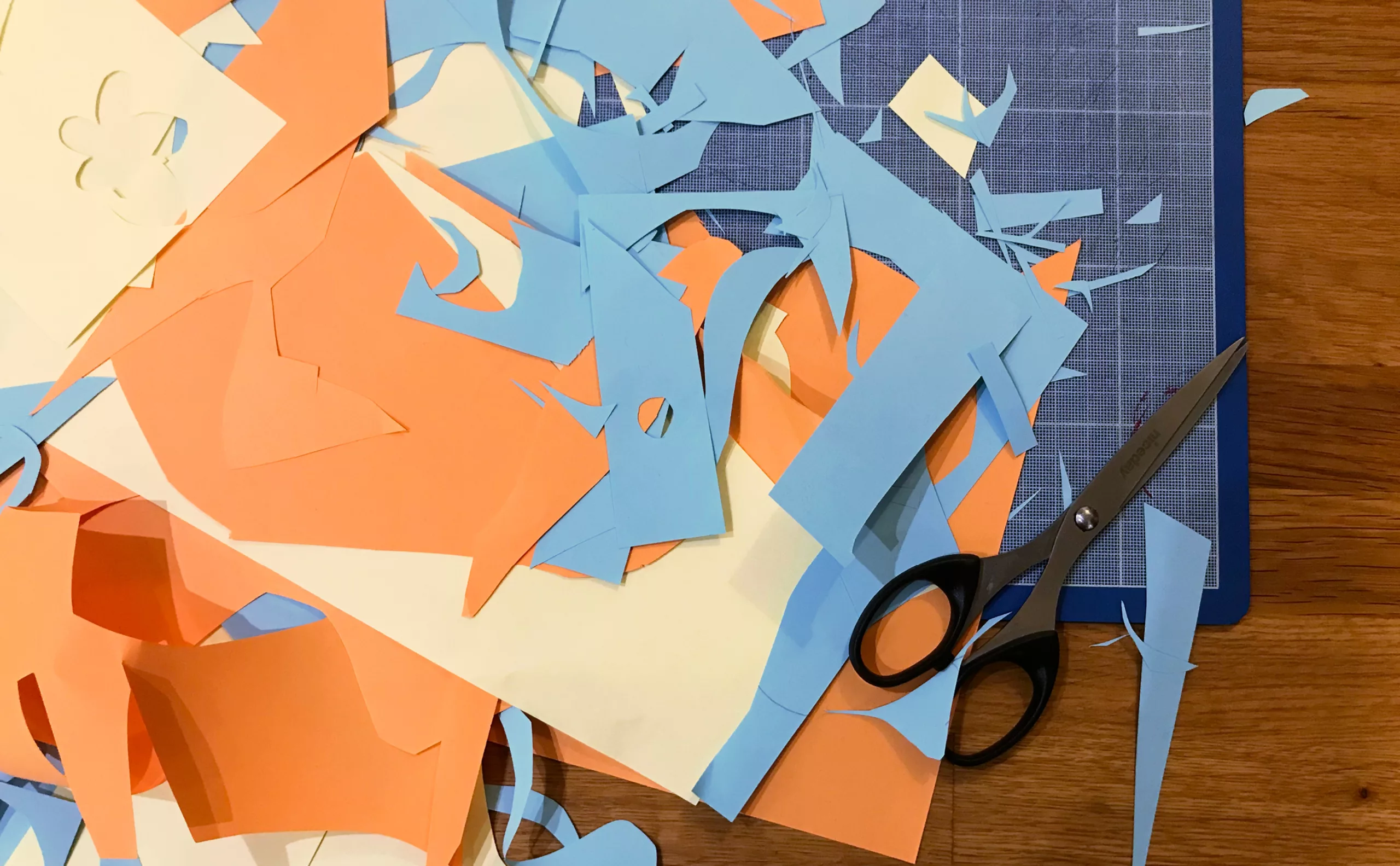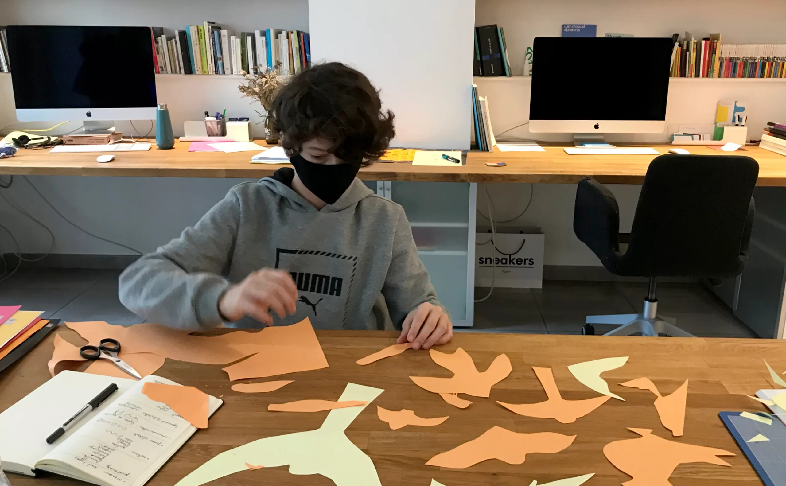 Afin d’enrichir l’univers illustratif, nous nous sommes lancés dans un atelier de papiers découpés. Une façon de quitter l’écran pour revenir à une forme de graphisme artisanal et sensible. Nous en avons profité pour accueillir un jeune stagiaire de 3e et créer un œuvre de street-art éphémère sur les murs du quartier.