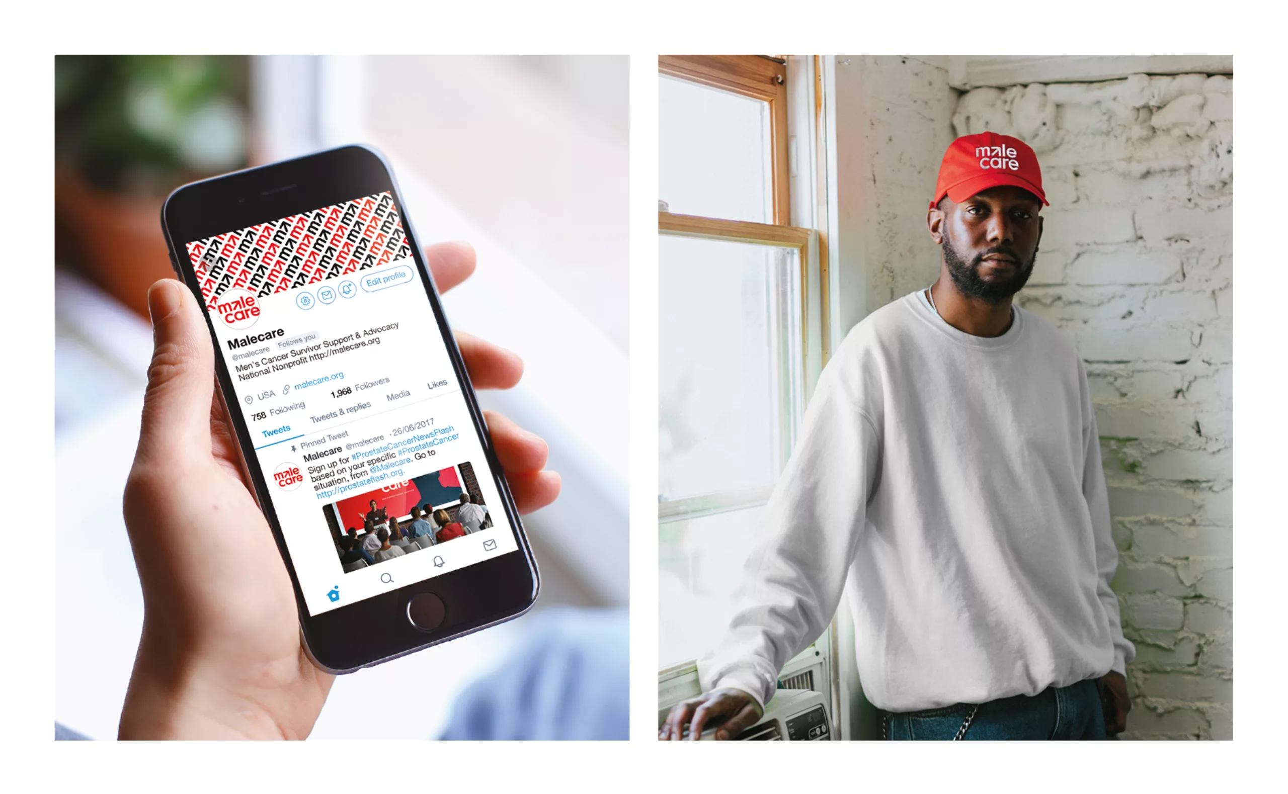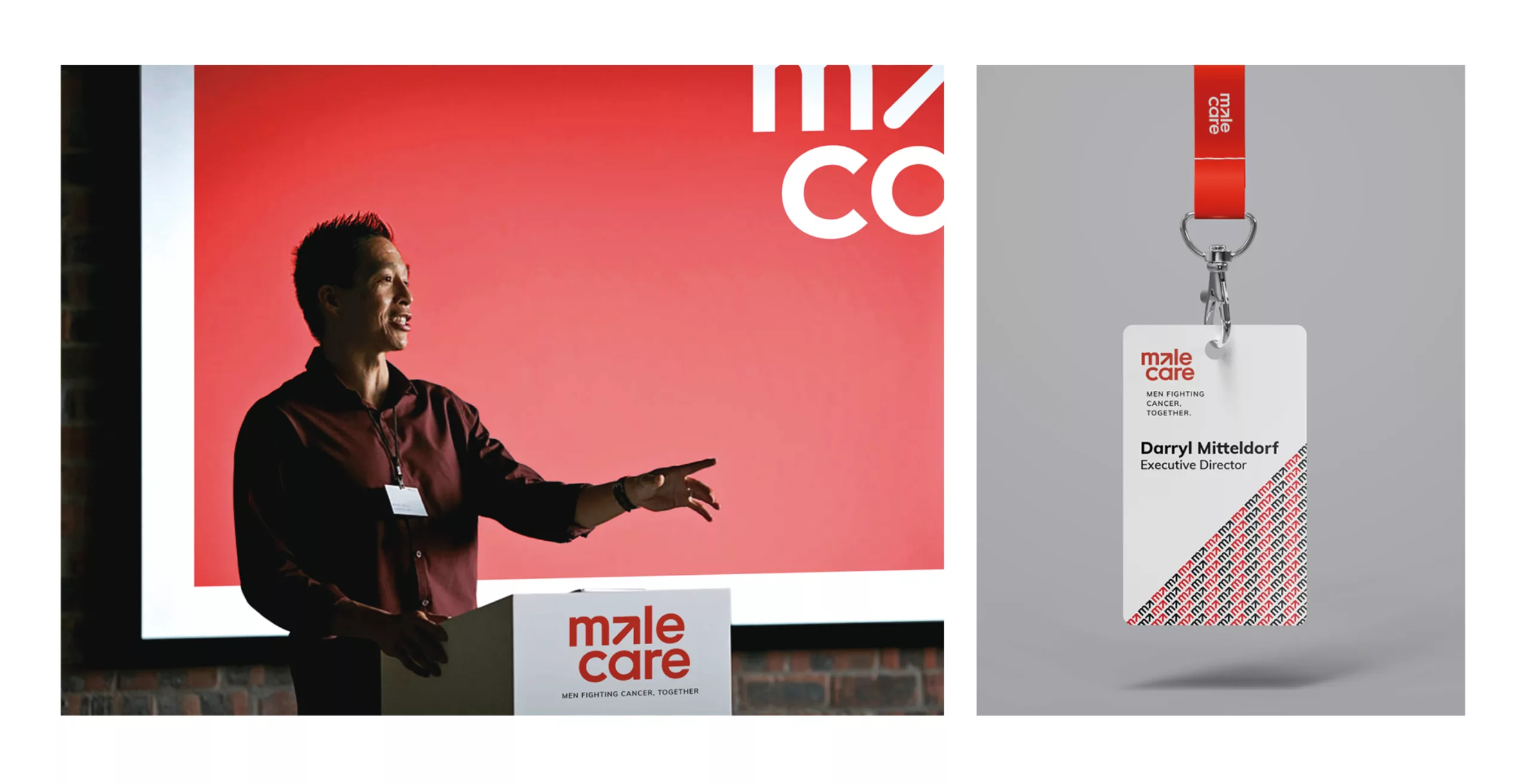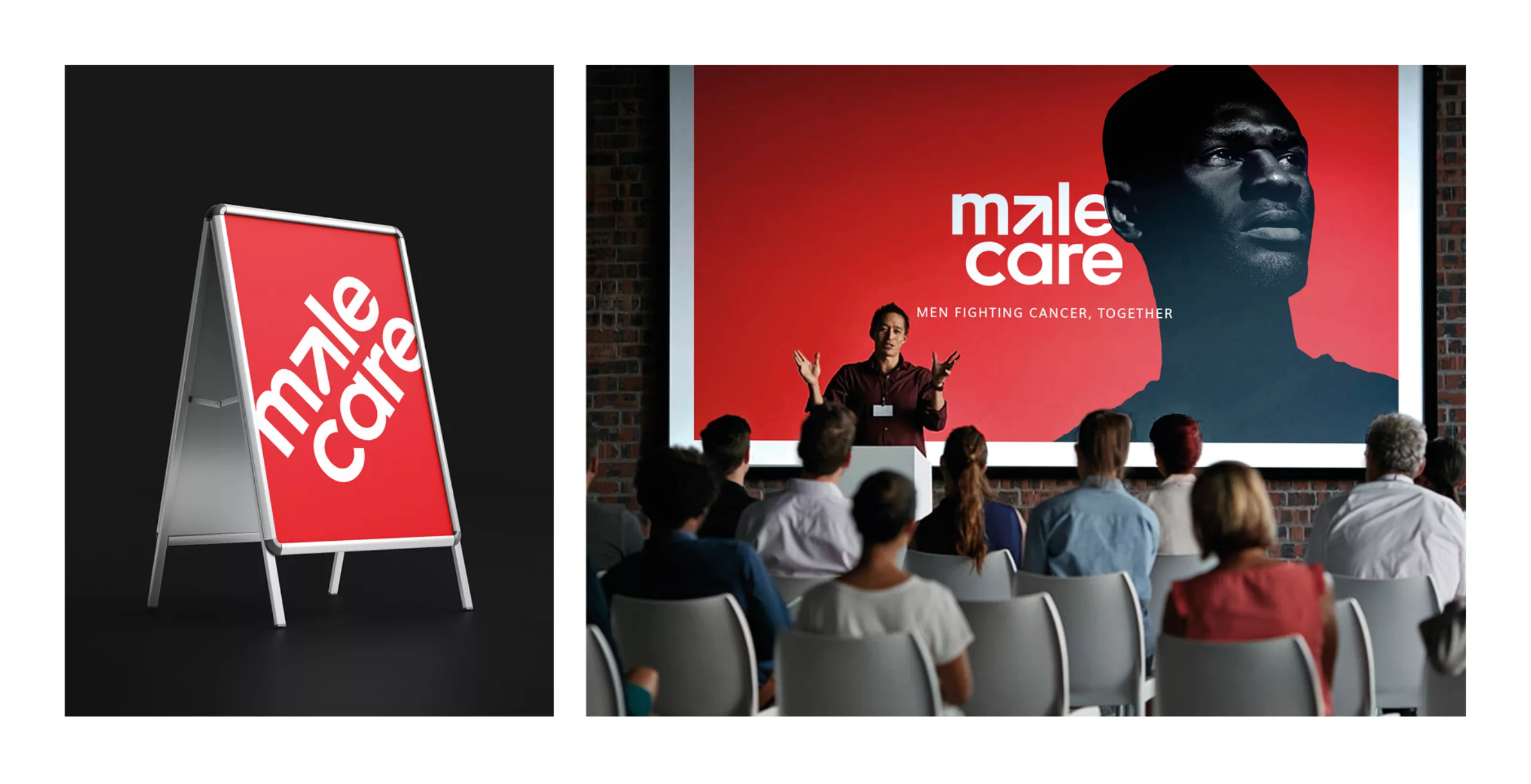 Le logotype précédemment conçu pour l’association consistait en un mot-symbole typographique qui combinait les mots “male” et “care” avec la lettre “L” surlignée en rouge. Cette lettre faisait subtilement allusion aux troubles de l’érection dont souffrent les hommes atteints d’un cancer de la prostate.