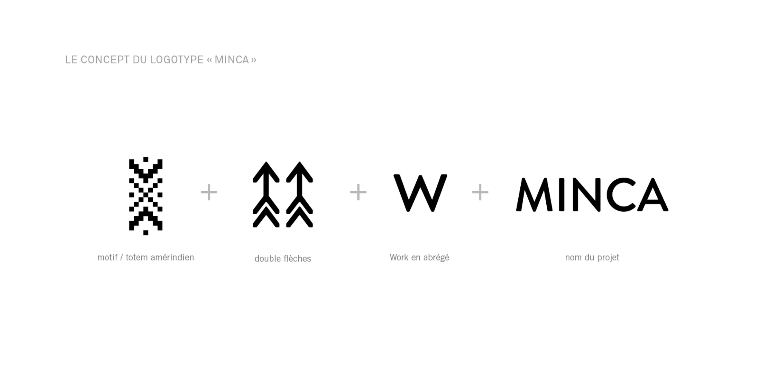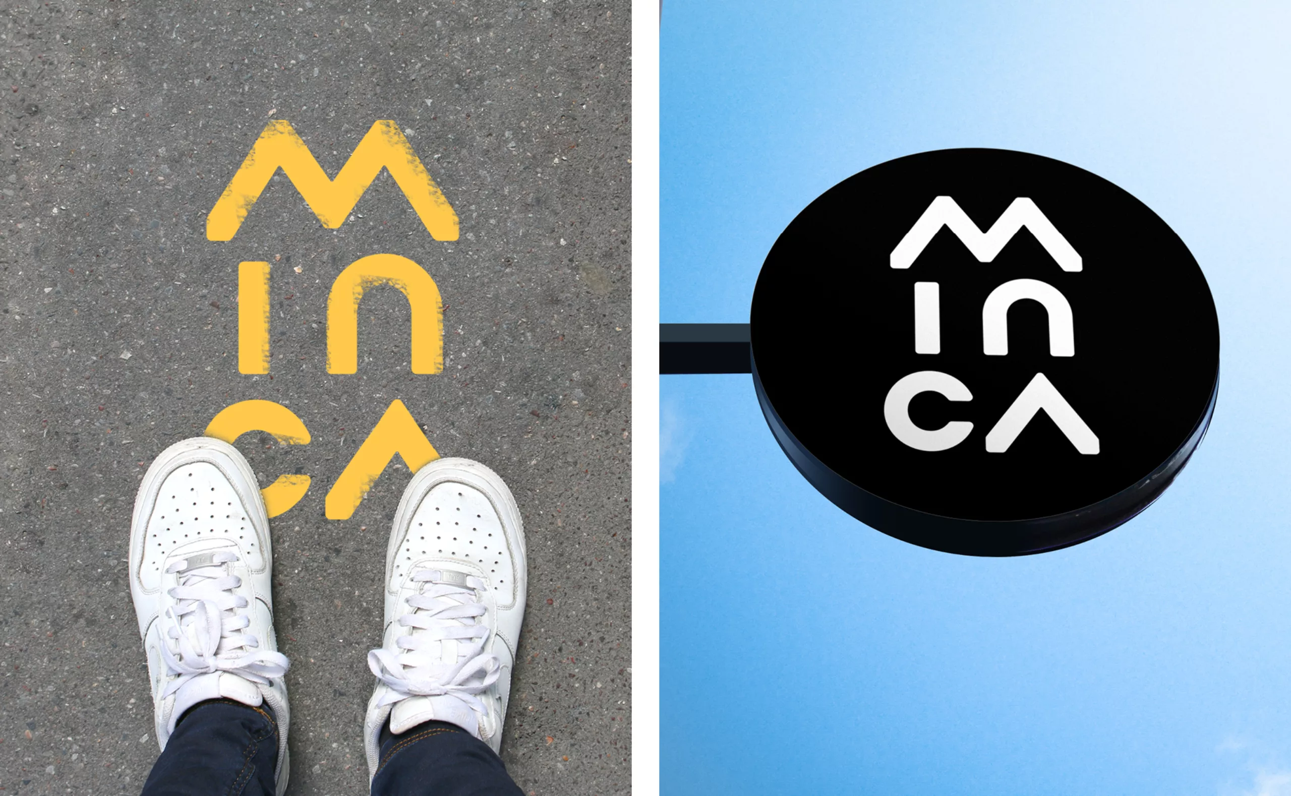 L’identité visuelle créée par Graphéine a pour objectif de symboliser l’esprit unique du projet, entre modernité et tradition, l’ici et l’ailleurs. Notre proposition est un travail typographique inattendu de l’intitulé « Minca ». Composé verticalement, le lettrage est stylisé pour évoquer les motifs géométriques et les rayures « Mola », l’art du tissage traditionnel pratiqué par les femmes amérindiennes Kuna. Le logotype reste cependant simple et contemporain, et il a un grand impact visuel lorsqu’il est utilisé pour de la signalétique et sur les interfaces numériques.