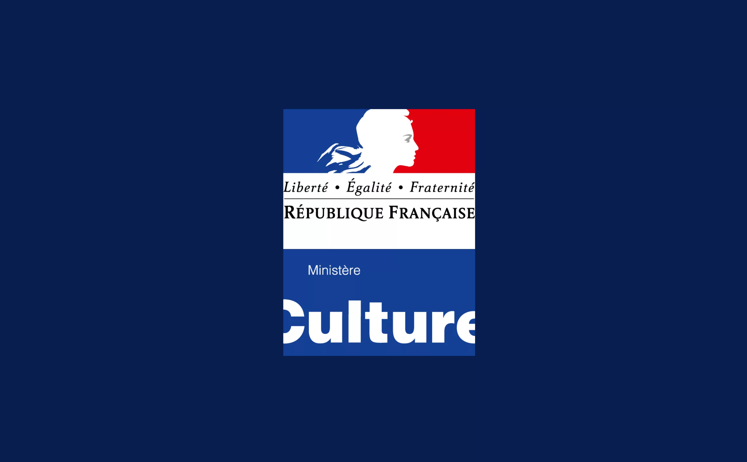 Le logotype a été conçu en 1989 par Pippo Lionni, et il insuffle dans ce rectangle bleu l’idée que la Culture ne peut pas rentrer dans le cadre. En 1999, le logo de la République Française est ajouté et vient chapeauter le logo du ministère. À partir de 2003, l’atelier LM Communiquer propose un principe de cadre rouge venant identifier très fortement la communication du ministère. En 2019, Graphéine est missionné pour repenser une charte graphique plus flexible et fonctionnelle, en particulier au regard des nouveaux usages digitaux.