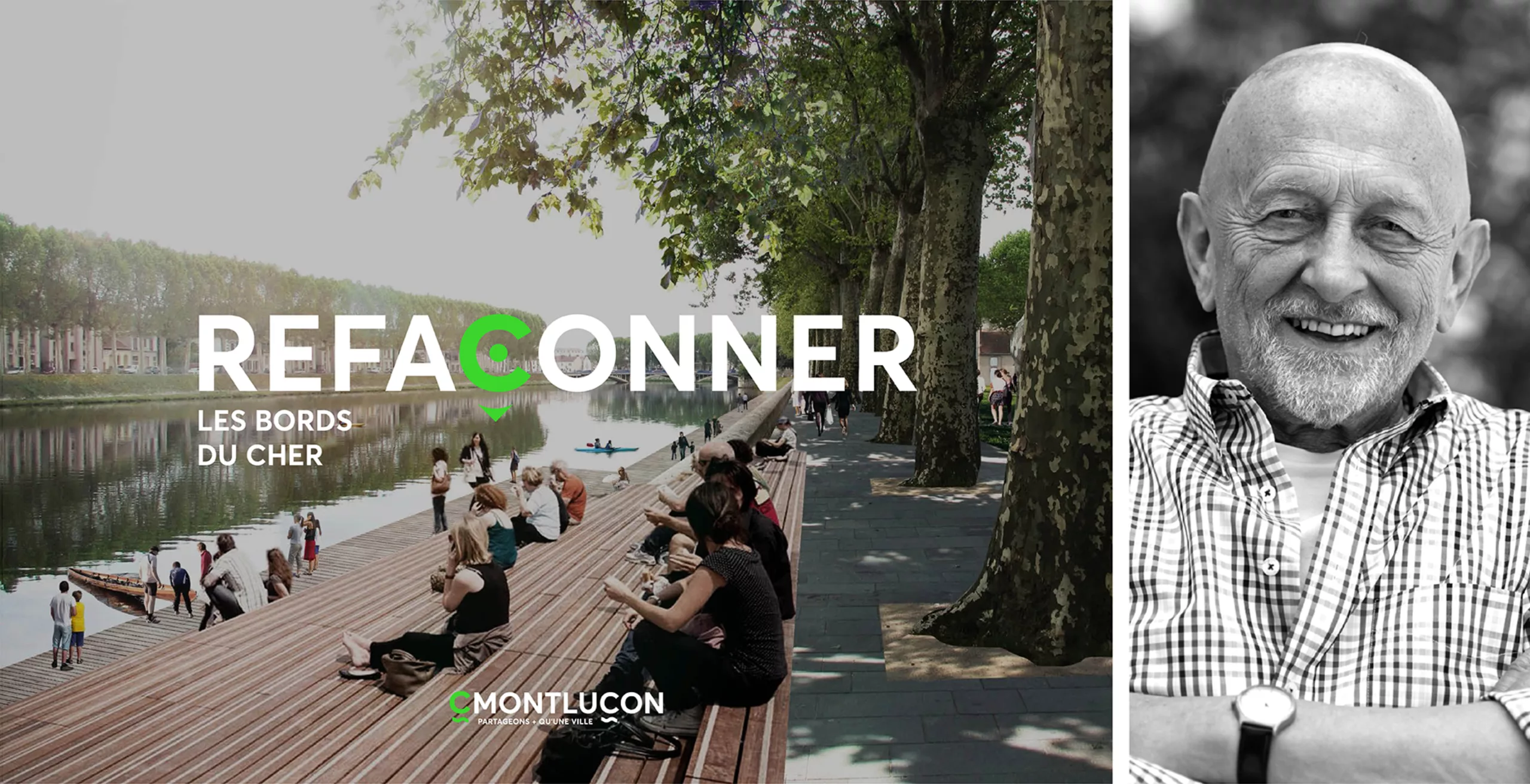 Montluçon, sous-préfecture de l’Allier, à mi-chemin entre Bourges et Clermont Ferrand est une ville de 39 000 habitants, située au cœur de la France. Le Cher marque la structure et le rythme urbain de la ville, en lui opposant sa dynamique et son tracé semi naturels. Cette rivière scinde la ville en deux parties : le centre-ville et la rive gauche. Le projet d’aménagement des berges permet de transformer cette coupure en trait d’union entre les deux rives et ses habitants.