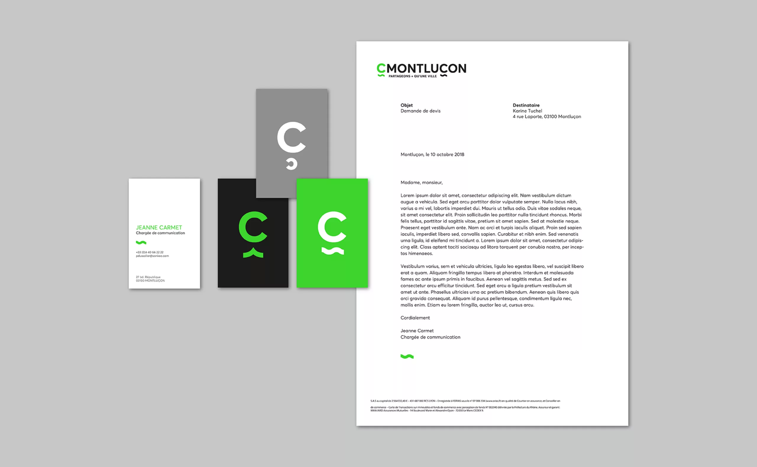 La cédille est un signe diacritique placé sous une lettre pour indiquer un changement dans sa prononciation, comme c’est le cas pour la ville de Montluçon. Dans cette identité visuelle, la référence à la cédille souligne à la fois la singularité de la ville ainsi que le tracé du court d’eau qui la traverse, le Cher. Si le « C » représente le Cher, la cédille représente l’ambition du projet d’urbanisation de créer un pont entre les deux rives pour réunifier Montluçon.