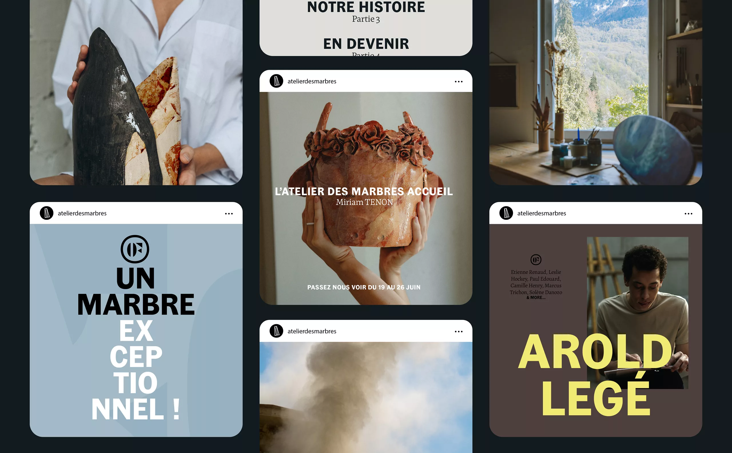 Nommé ainsi à l’époque de Louis XIV, le marbre d’Ilhet porte dorénavant la marque Opéra Fantastico. Cette marque « produit » a pour vocation de faire rayonner le village d’Ilhet et son marbre à travers le monde. Au cœur du village d’Ilhet, l’Atelier des Marbres est un lieu de création, d’exposition et de pédagogique. On y découvrir les savoir-faire autour du marbre. L’Atelier est également un café et une résidence d’artistes, où designers et créateurs se côtoient. Pour renforcer l’unité et la cohérence entre les deux identités, nous avons fait le choix de codes graphiques communs.