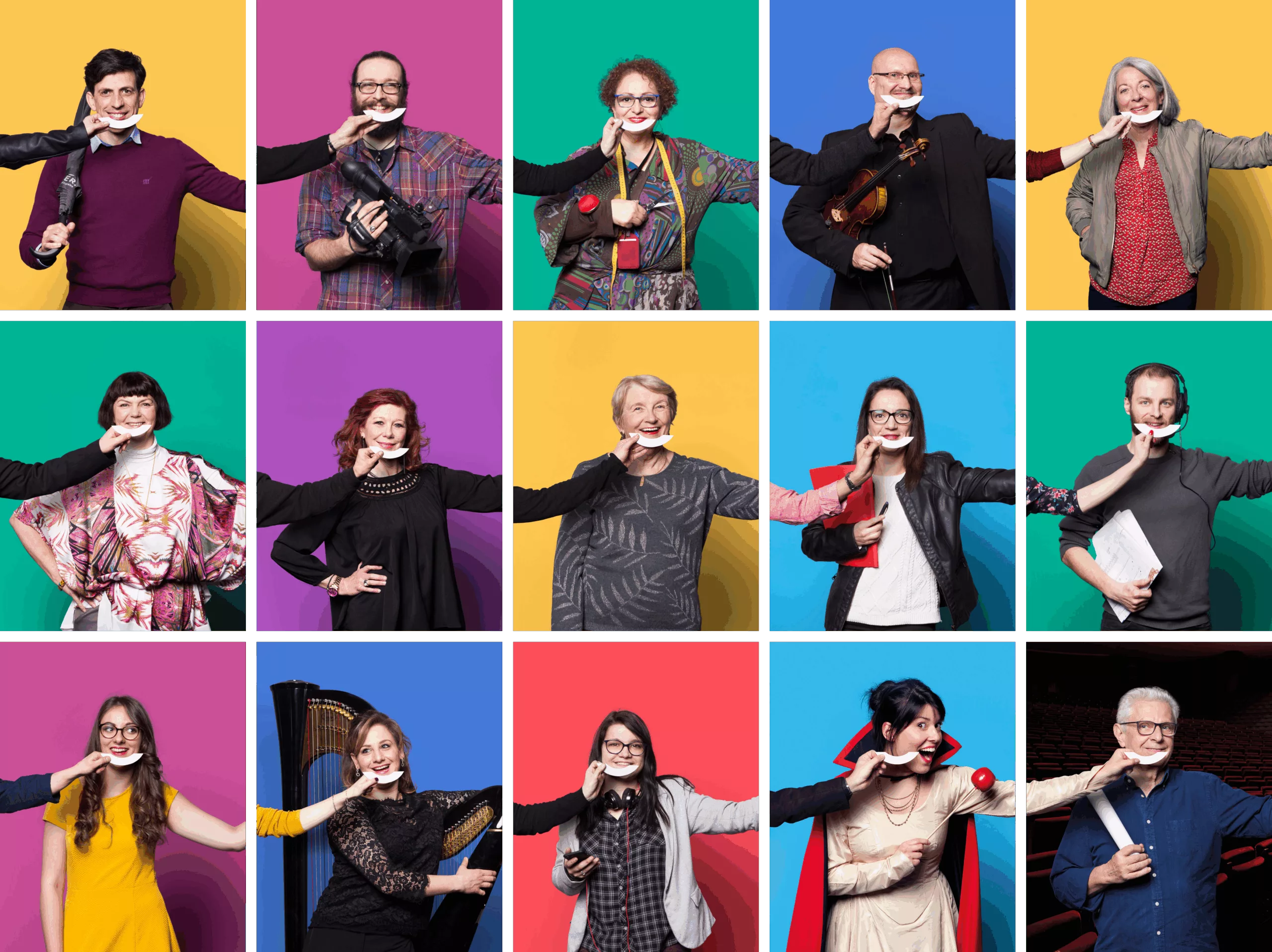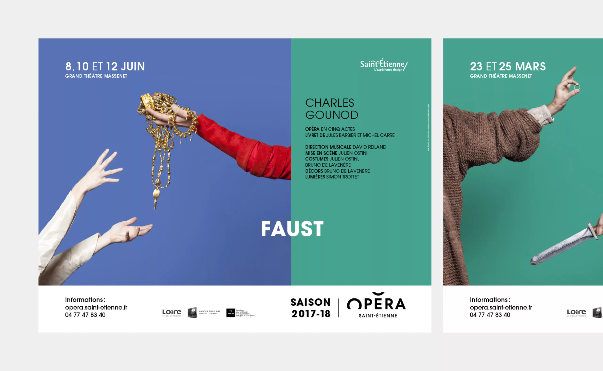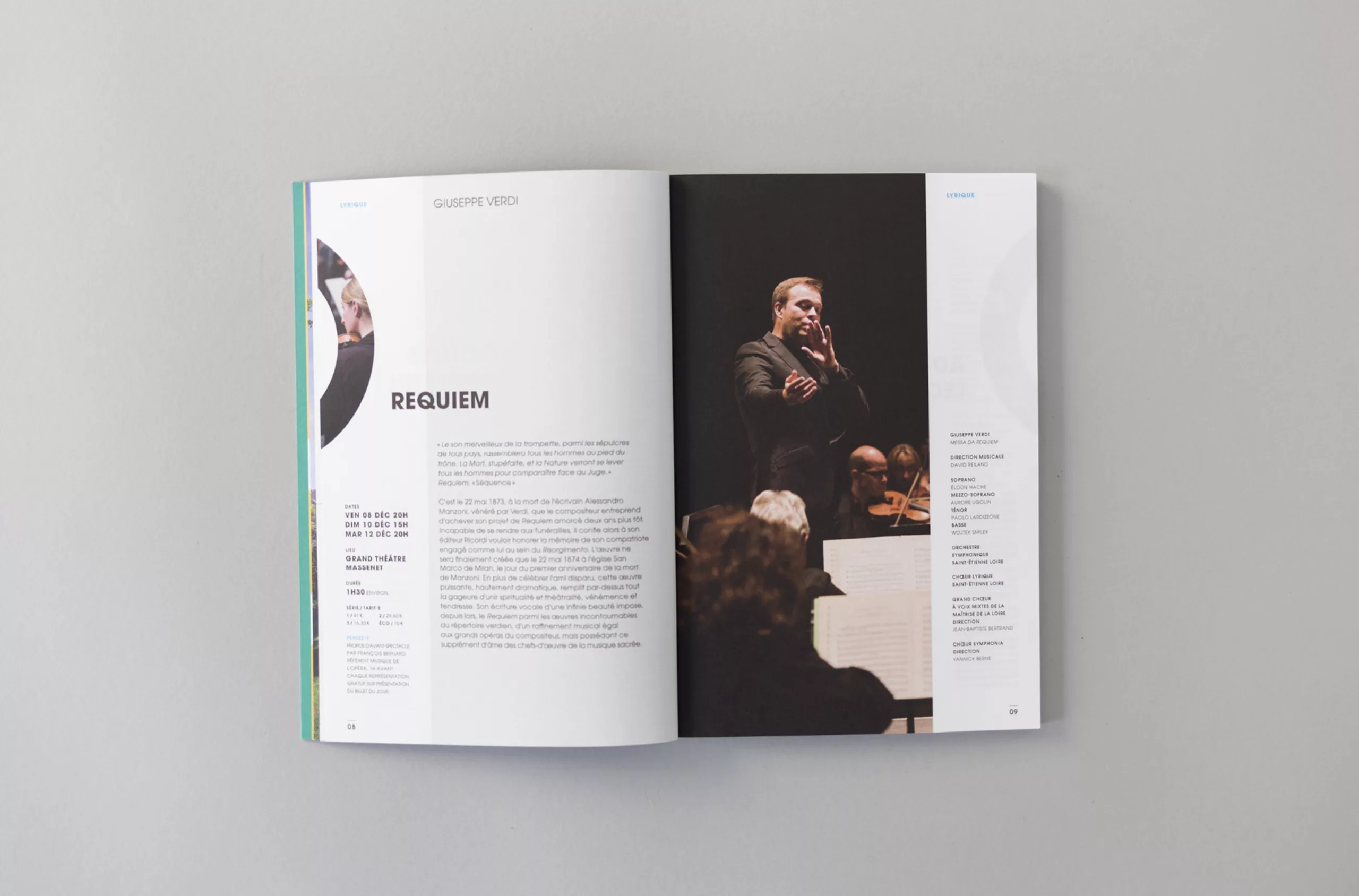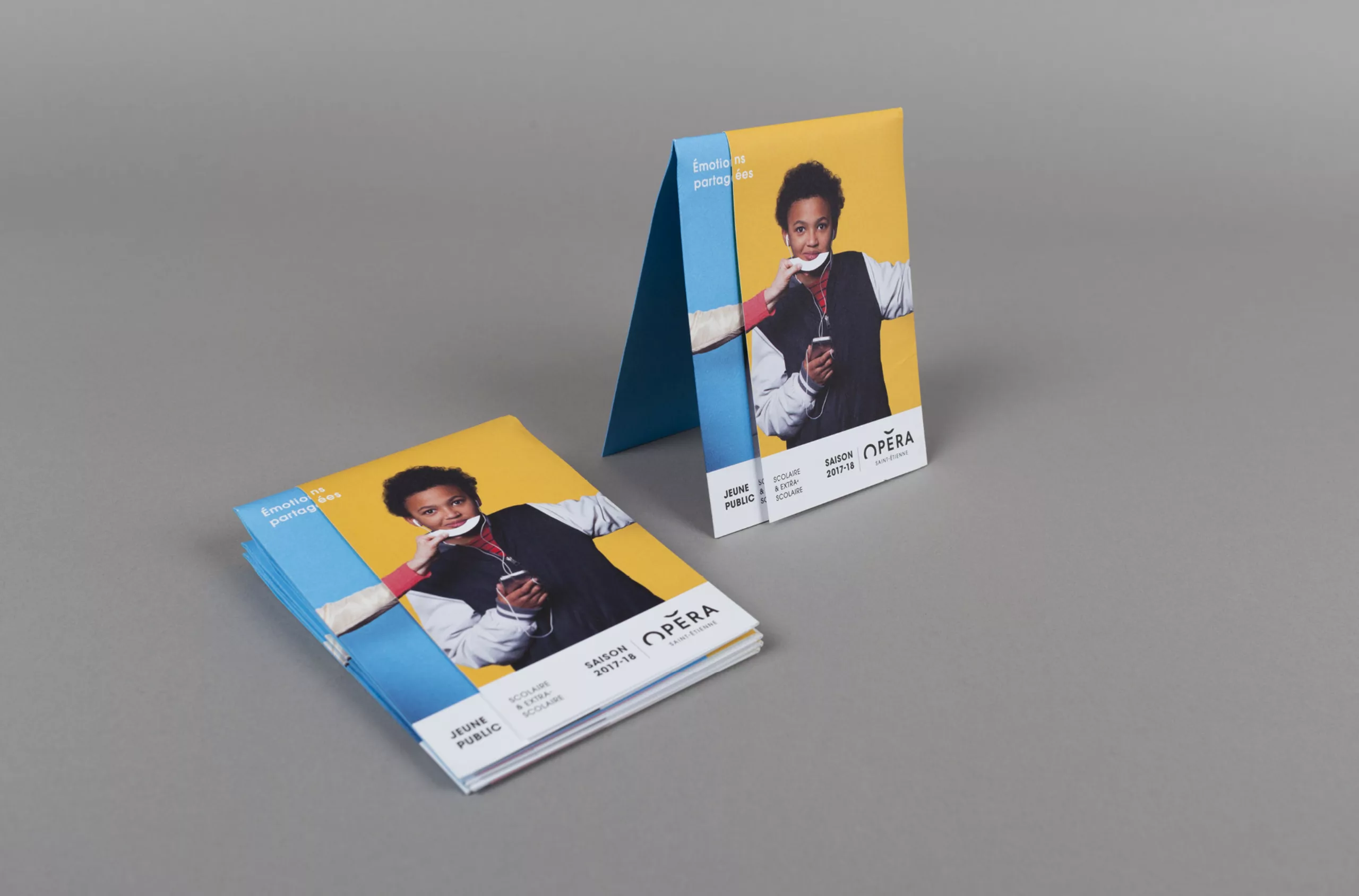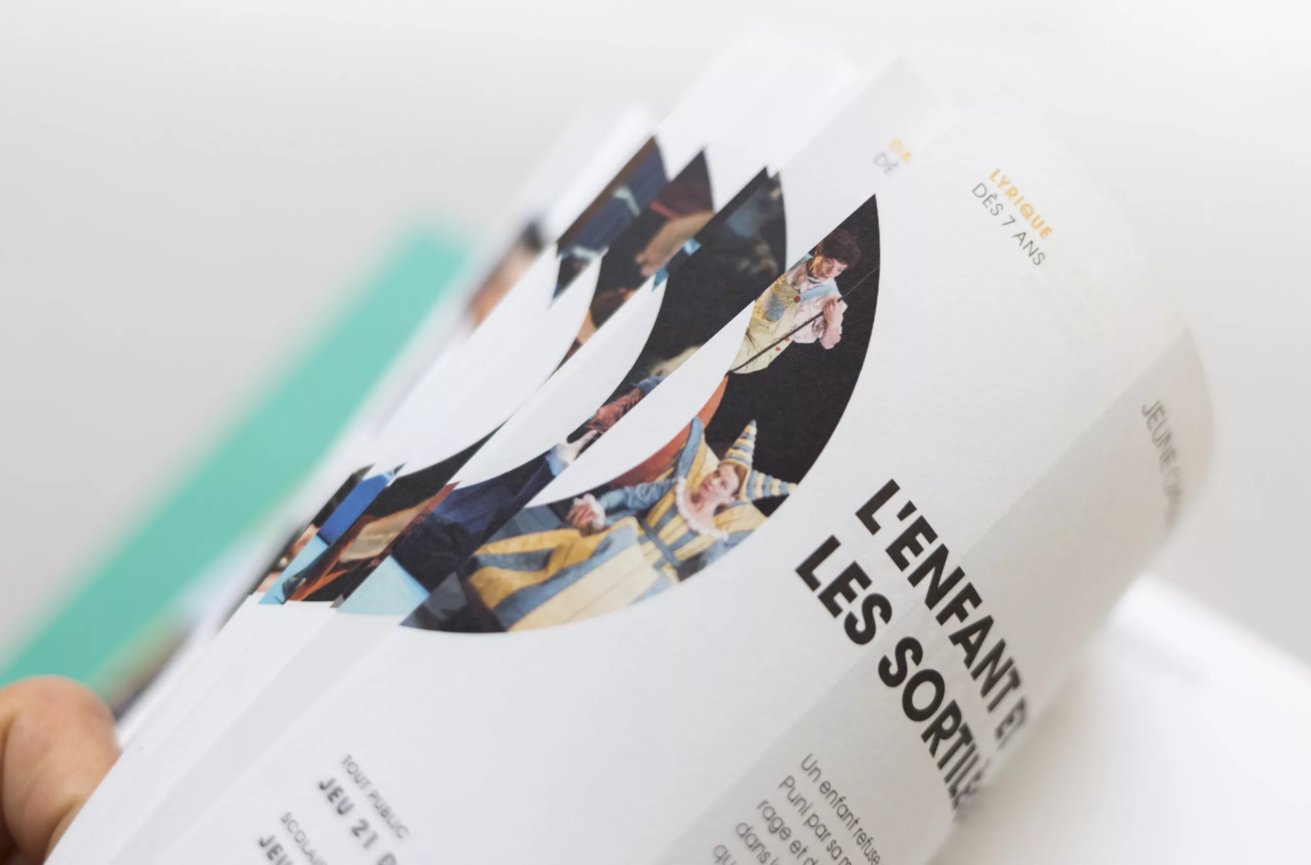 En 2015, nous concevions l’identité visuelle de l’opéra. Un logo typographique décrivant autant le bâtiment (avec son accent en forme de pagode) que la mission de cet opéra (accueillir et divertir tous les publics). Au fur et à mesure des saisons, le challenge était de poursuivre et renouveler cette histoire. Pour la première édition, nous mettions en avant les agents, puis l’orchestre l’année suivante. En 2017, nous avions décidé de mélanger les agents, les musiciens et les publics !