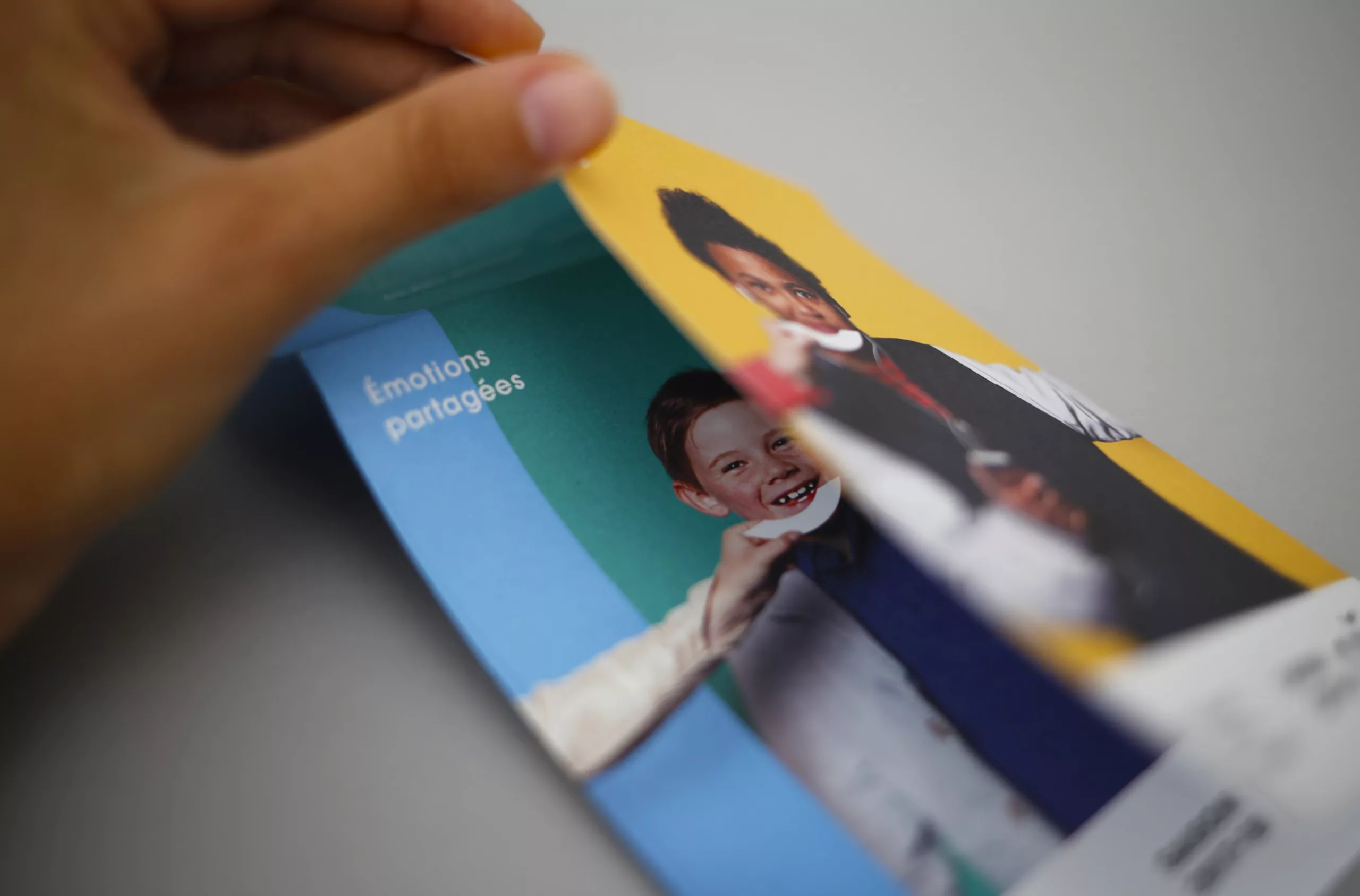 Comme dans les saisons précédentes, nous avons imaginé une série de 8 visuels de couvertures. Chaque couverture s’enchaine avec la suivante pour constituer une farandole. Les sourires semblent passer de main en main. Un esprit de forte générosité se dégage de l’ensemble. Passe le sourire à ton voisin !