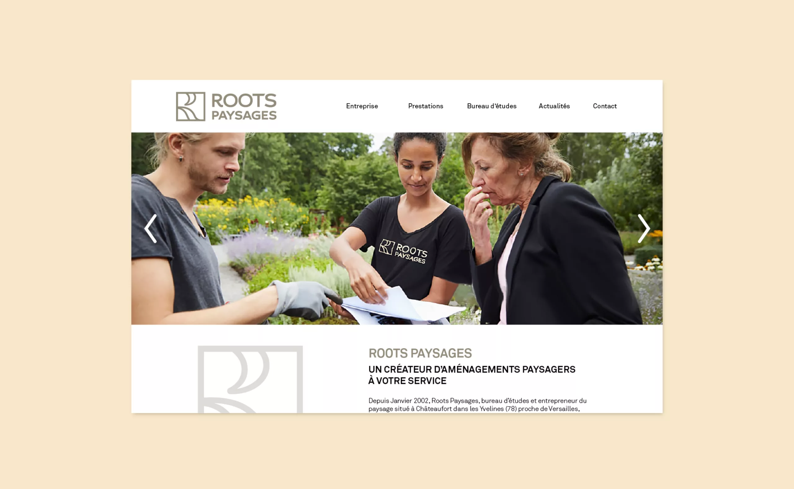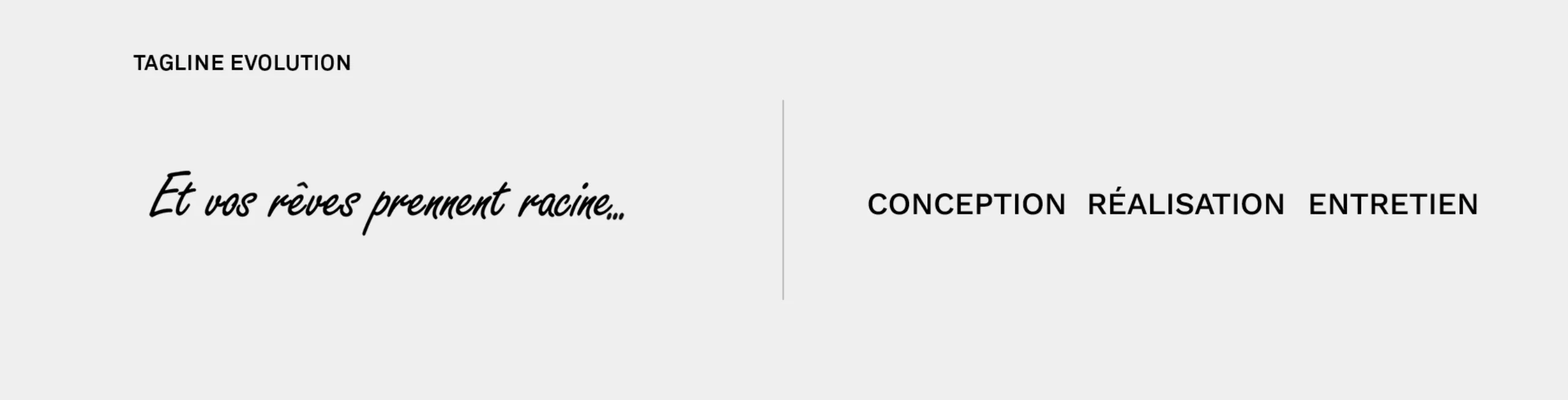 Initialement, l’équipe de Roots Paysages souhaitait changer de nom afin de véhiculer une image en adéquation avec professionnalisme et le standing des prestations. Le nom et le logotype historiques de la marque connotaient une images « hippie » dévaluant le niveau d’expertise des prestations proposées. L’expression « à la roots » signifiant un état d’esprit décontracté et nonchalant.