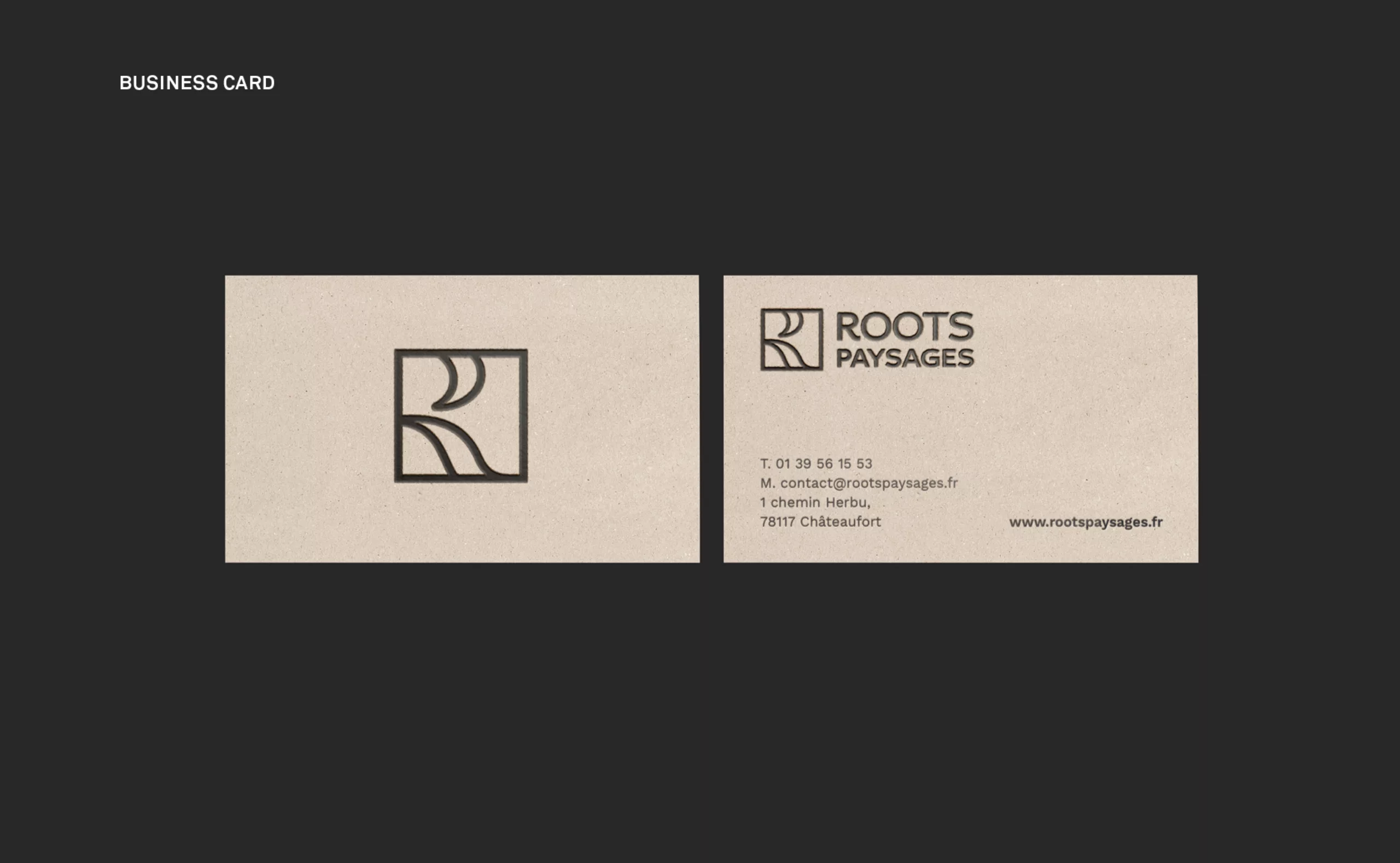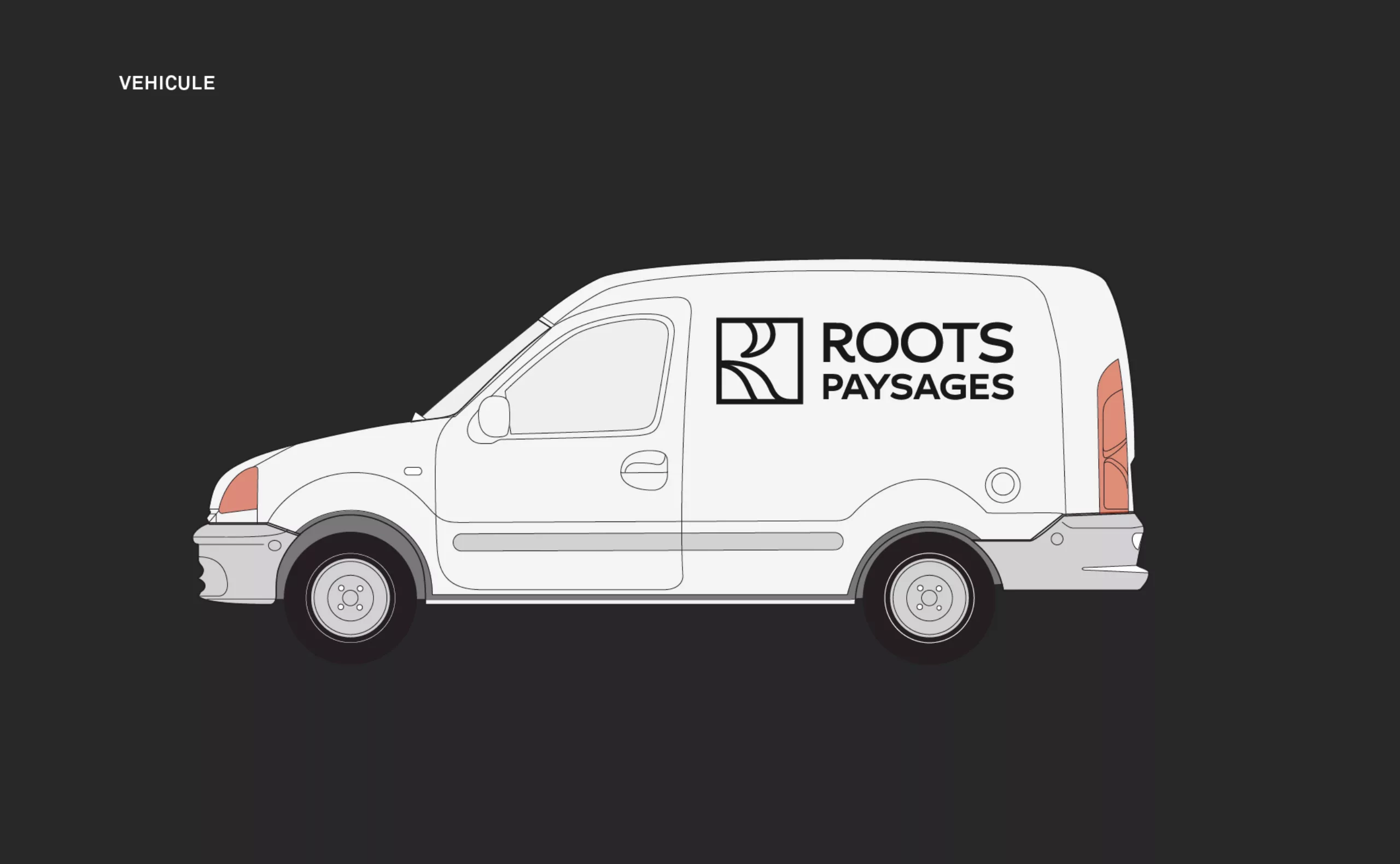 S’agissant de conserver la notoriété du nom, Graphéine a accompagné Roots Paysages dans la construction de son territoire de marque tout en prenant le contre-pied d’une image trop détendue. Le nom « Roots Paysages » a été conservé tandis que le bloc typographique a entièrement été redessiné gommant l’esprit cartoon du précédent logo.