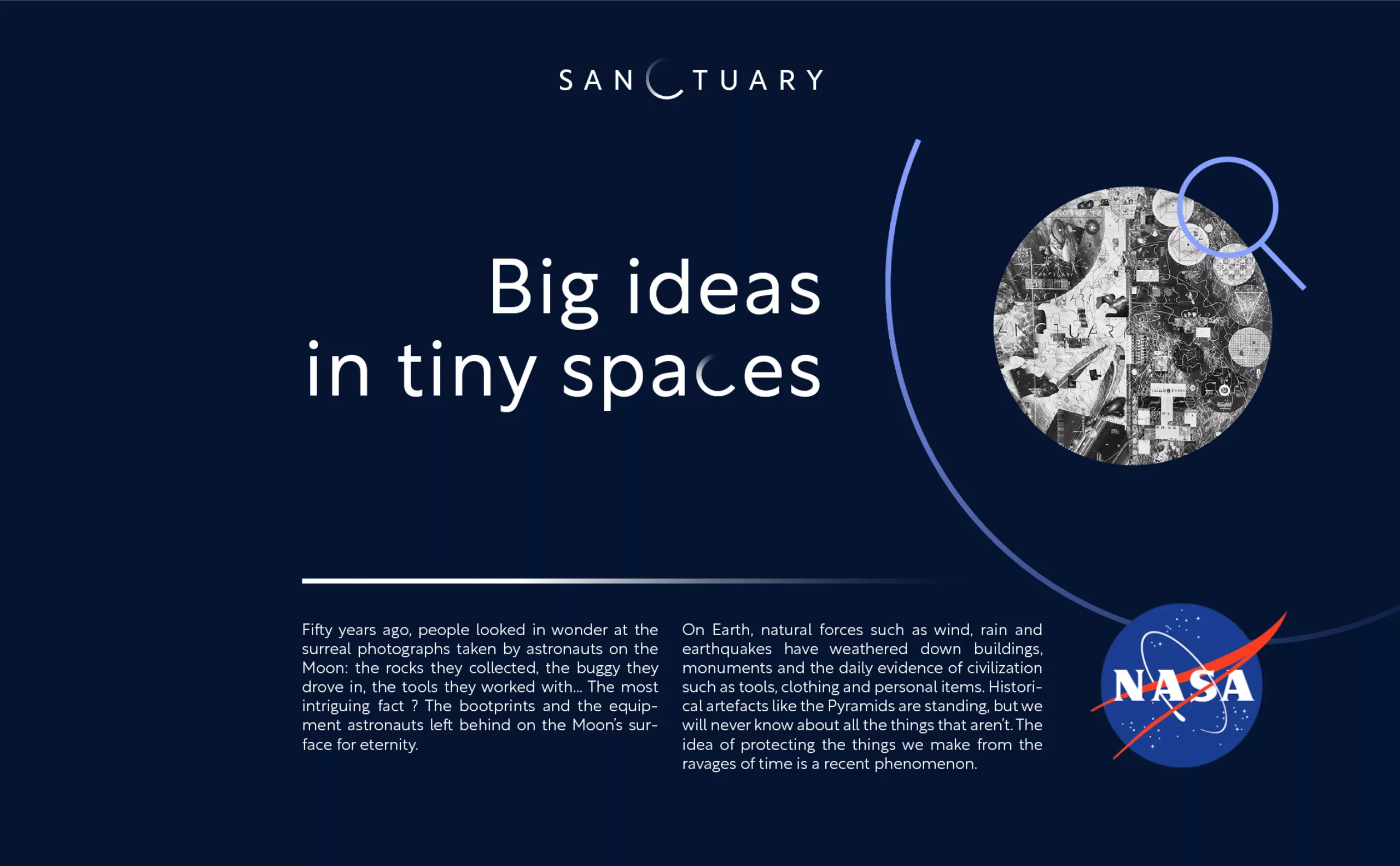 “Sanctuary” est la concrétisation du rêve de Benoit Faiveley, créateur du projet, qui a embarqué toute une équipe d’experts pour cette mission extraordinaire, allant jusqu’à convaincre la Nasa de transporter la capsule sur la lune.