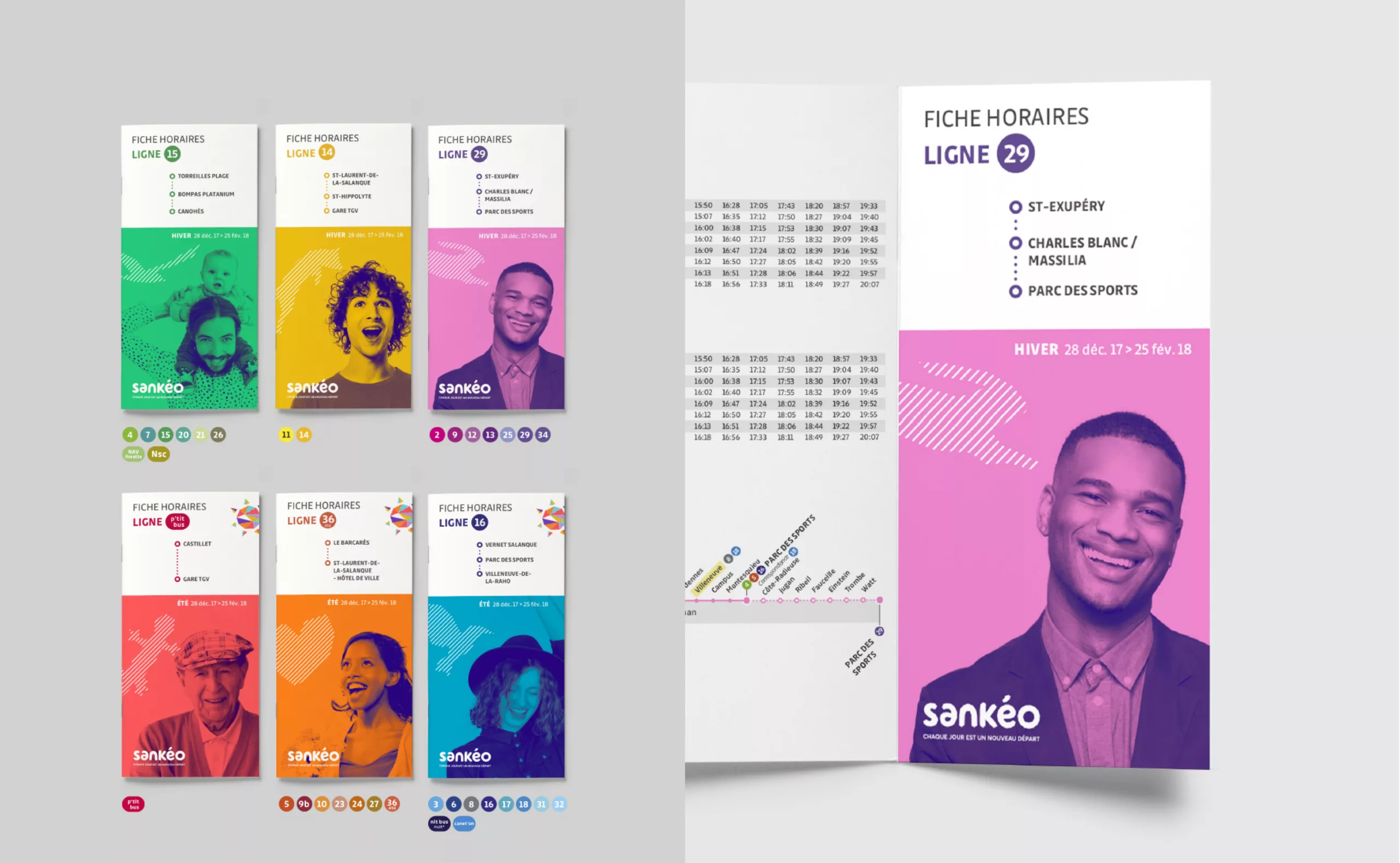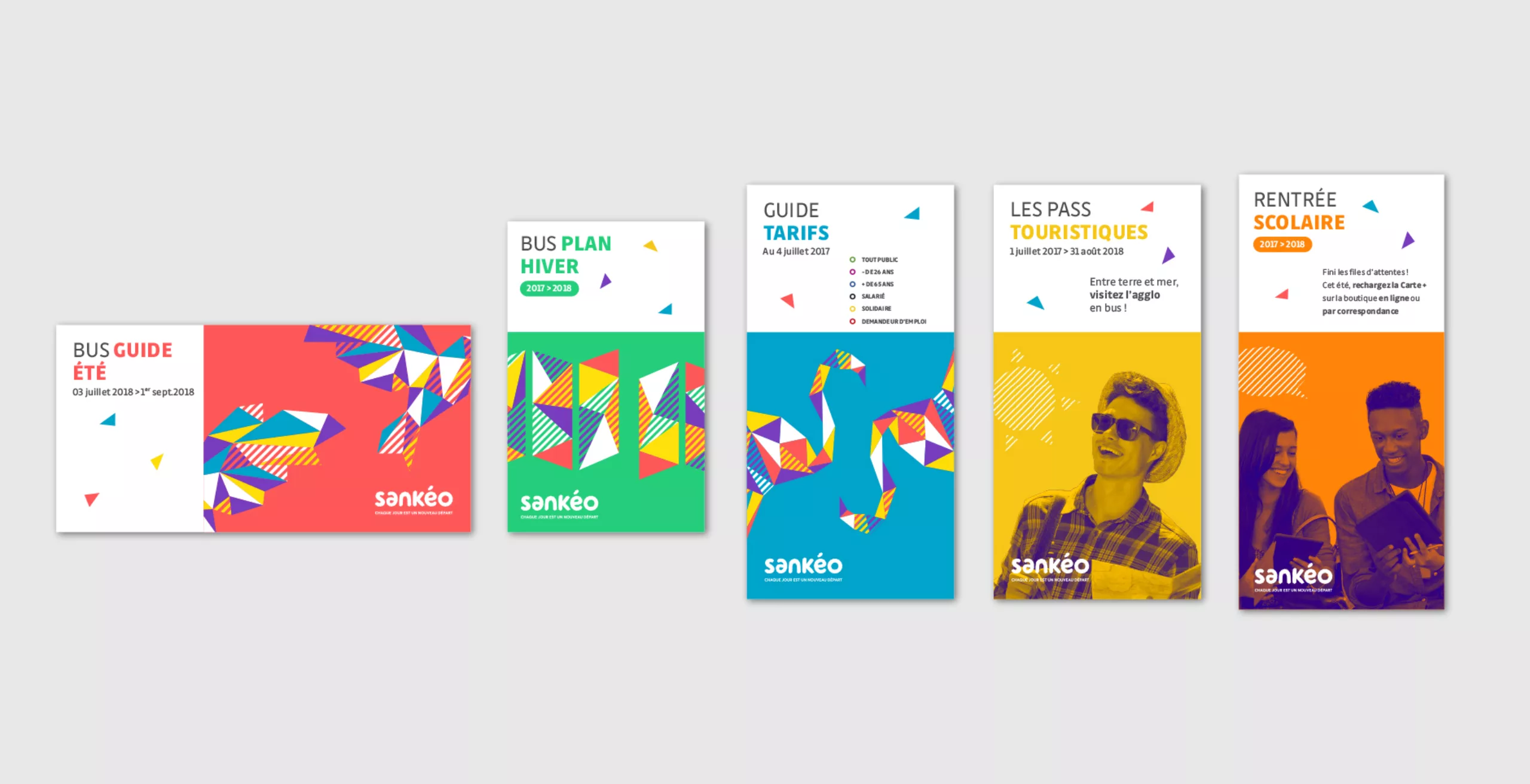 Nouveau nom, nouvelle identité visuelle et nouveau slogan. Graphéine signe le rebranding du réseau de transport public de Perpignan Métropole pour le compte de l’opérateur Vectalia France. L’ancien acronyme CTPM devient “Sankéo”, une version moderne de l’expression catalane “sang et or”, un clin d’œil aux habitants de la Catalogne française. Tout en gardant un pied dans la tradition et le patrimoine avec des codes graphiques faisant écho au territoire (les rayures des armoiries catalanes, les facettes d’un grenat, l’art optique, etc.), cette nouvelle image est résolument tournée sur l’avenir, en particulier vers les jeunes, visages de la mobilité de demain.