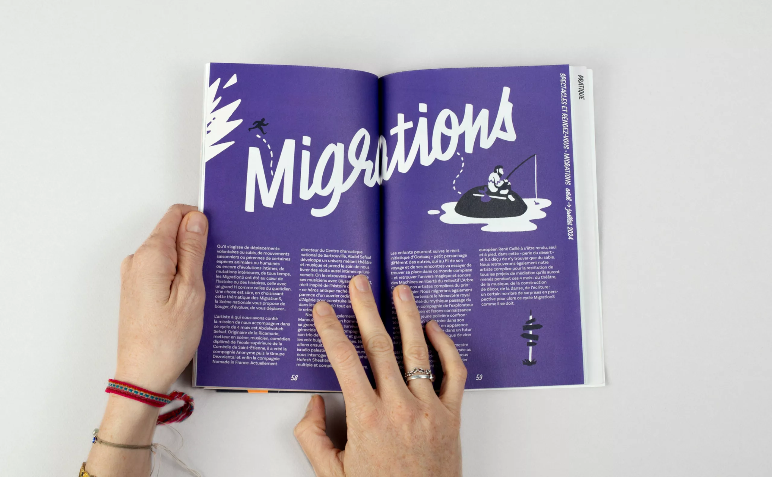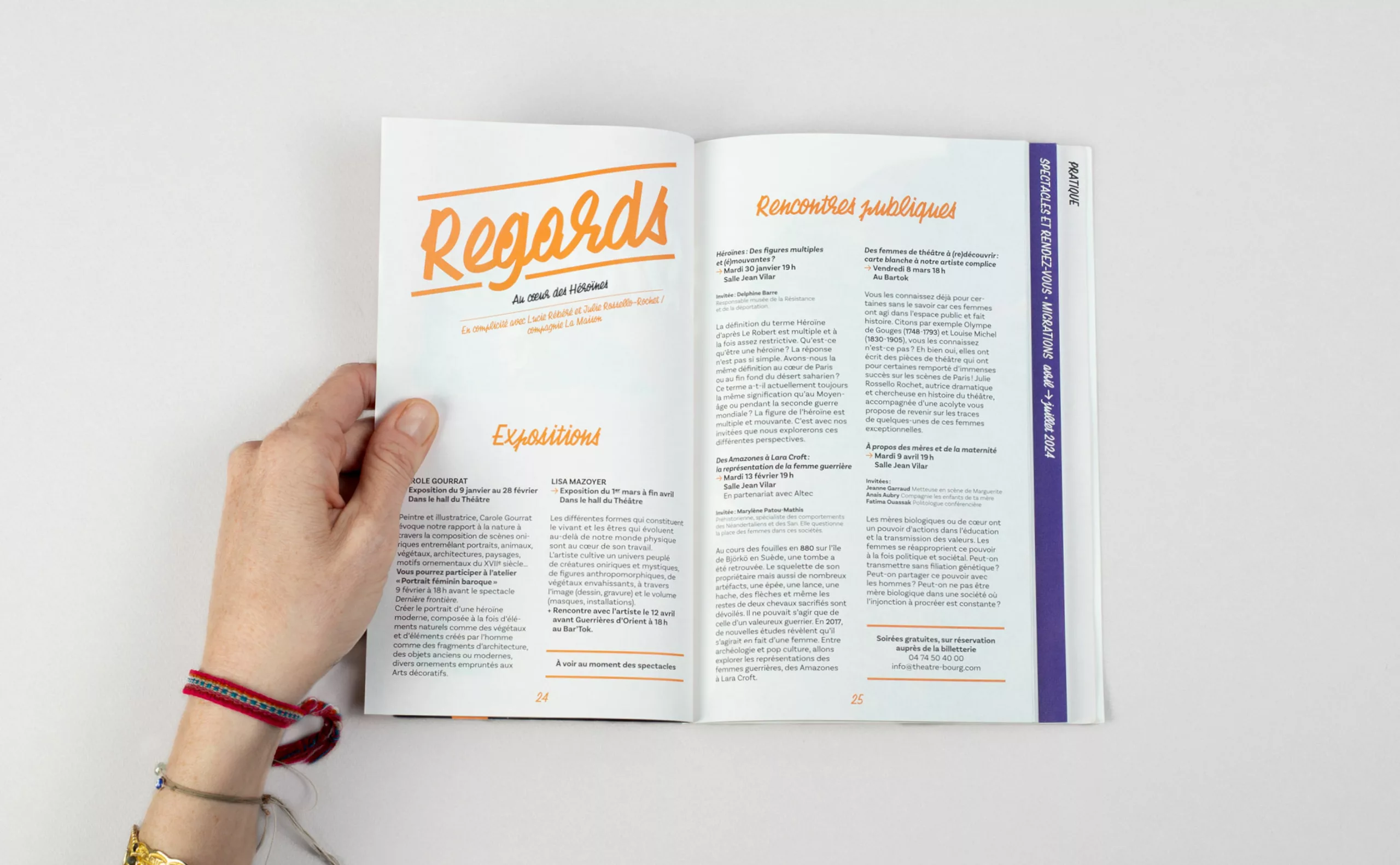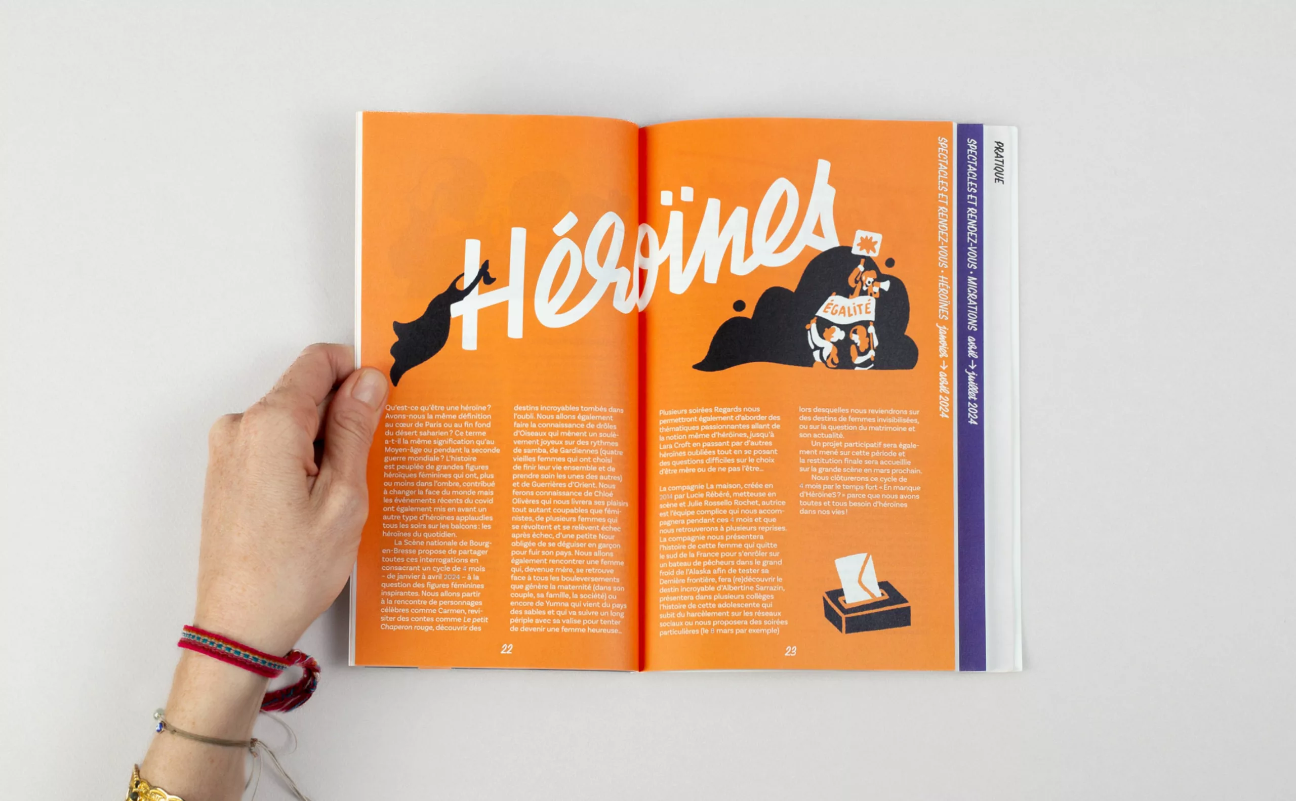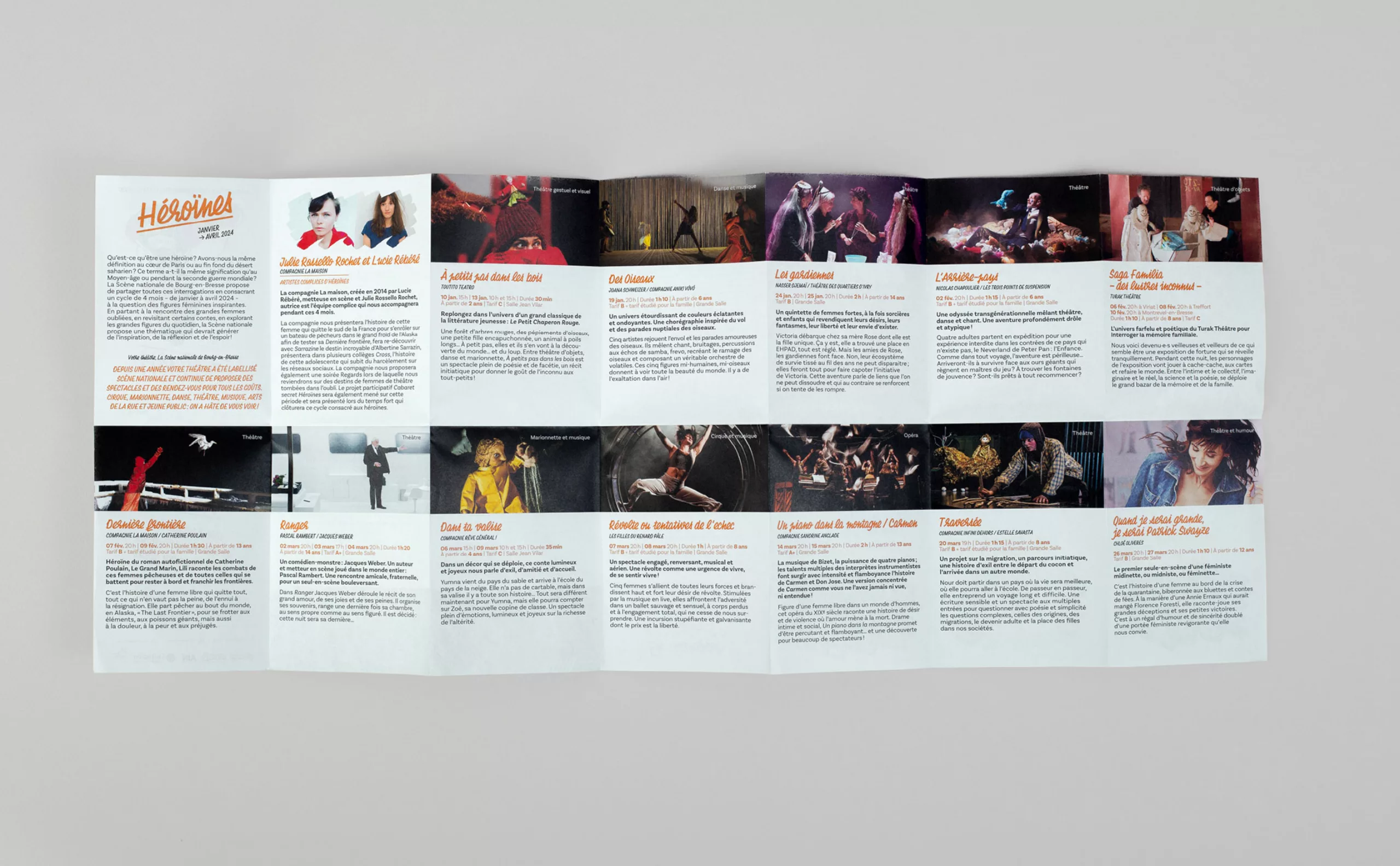 Il était pour nous évident que le concept créatif devait graviter autour du public, qui avait été trop longtemps absent. Les habitants de Bourg-en-Bresse et des environs deviennent ainsi les protagonistes de cette nouvelle communication. “Theatrum Mundi” (le grand théâtre du monde) s’impose comme une métaphore, suggérant que chaque individu joue un rôle, consciemment ou non, sur la vaste scène du monde. Puisant son inspiration dans la vie, les interactions humaines et le quotidien, le théâtre devient en quelque sorte un reflet de notre société. C’est pourquoi nous avons placé l’Humain – qu’il soit public ou collaborateur – au premier plan, car c’est lui qui insuffle vie et dynamisme à cette nouvelle Scène nationale de Bourg-en-Bresse.
