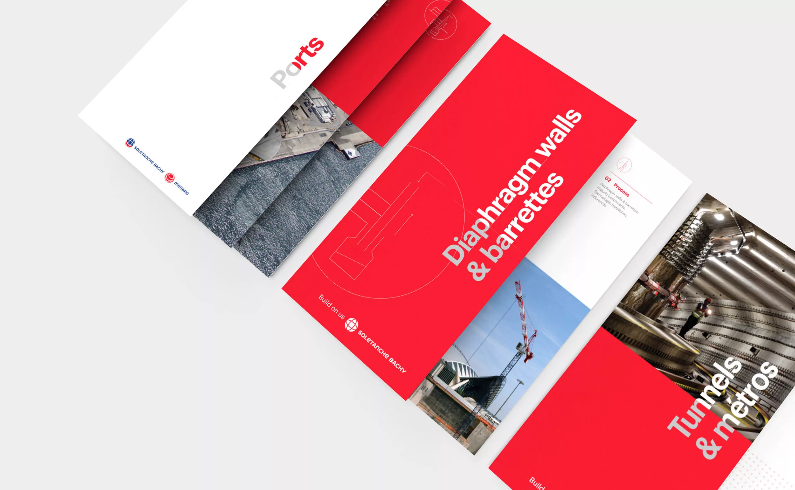 IndustriesGraphéine a accompagné Soletanche Bachy, une entreprise de construction spécialisée dans les métiers du sol, dans le refonte de sa charte graphique afin de créer de la cohérence sur l’ensemble de leurs supports de communication.