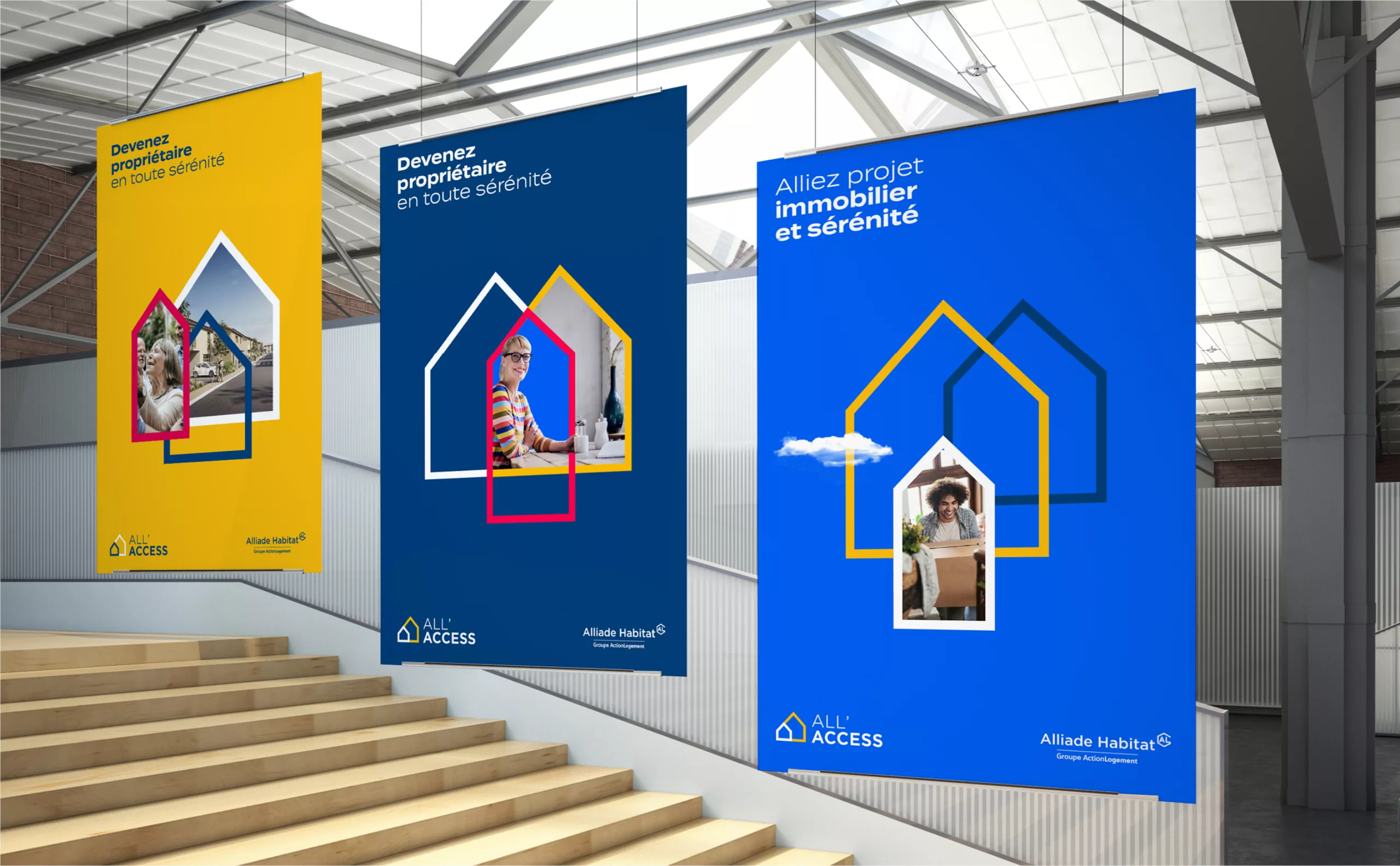IndustriesIdentité visuelle de All’ Access le programme d’accession à la propriété d’Alliade Habitat, filiale du groupe Action logement, premier bailleur social de la région Auvergne-Rhône-Alpes.