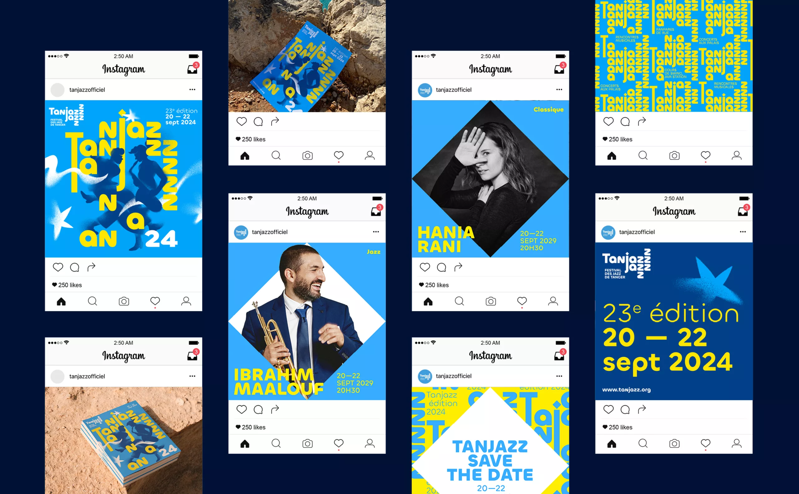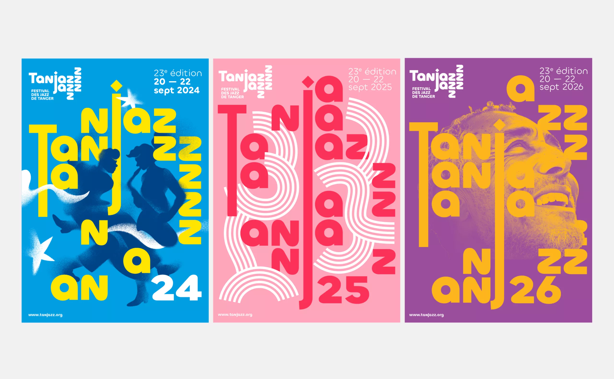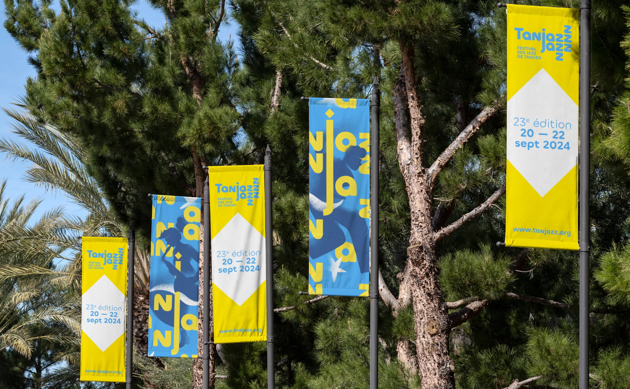 Créé en 2000 par Philippe Lorin, Tanjazz s’est imposé comme un rendez-vous musical incontournable au Maroc. Sous la direction de Moulay Ahmed Alami, le festival confie à Graphéine la mission de repenser son identité visuelle, avec un nouveau visuel qui accompagnera la saison 2024.