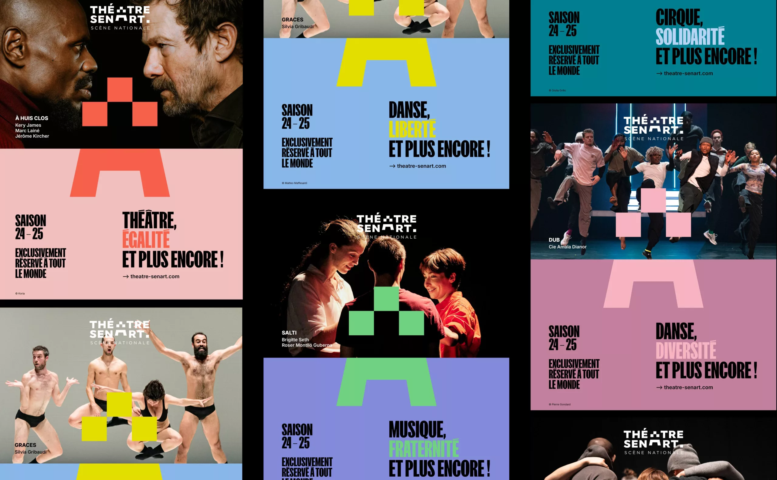 À l’occasion du lancement de sa saison 2024-2025, et avec l’arrivée de Caroline Simpson Smith à la direction, le Théâtre-Sénart a souhaité impulser un nouvel élan à sa communication. Graphéine a remporté la consultation publique de ce projet en questionnant la place de l’institution dans l’identité du territoire Seine-et-Marnais, ainsi qu’en modernisant son identité visuelle et en construisant une nouvelle histoire autour de son logotype.