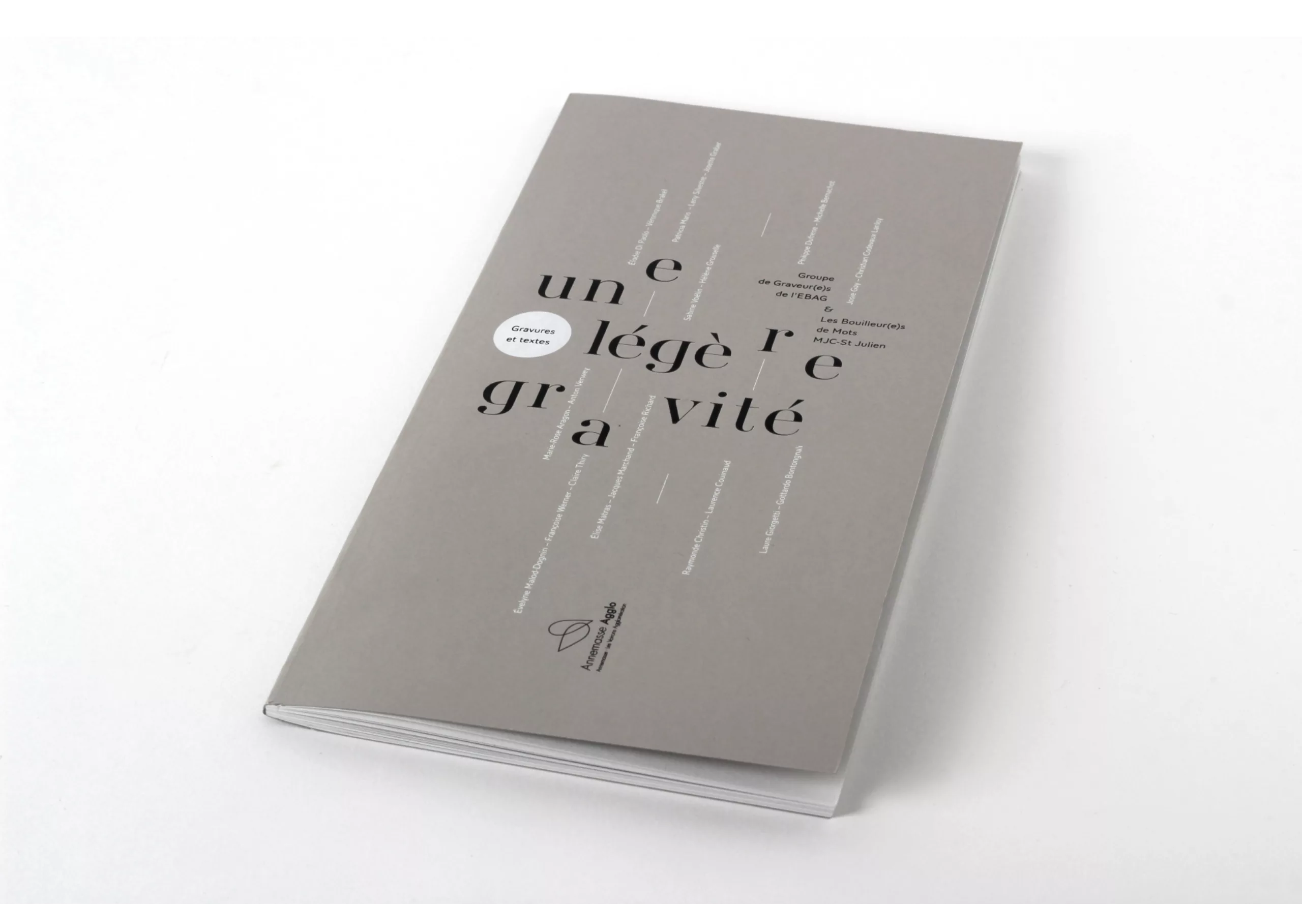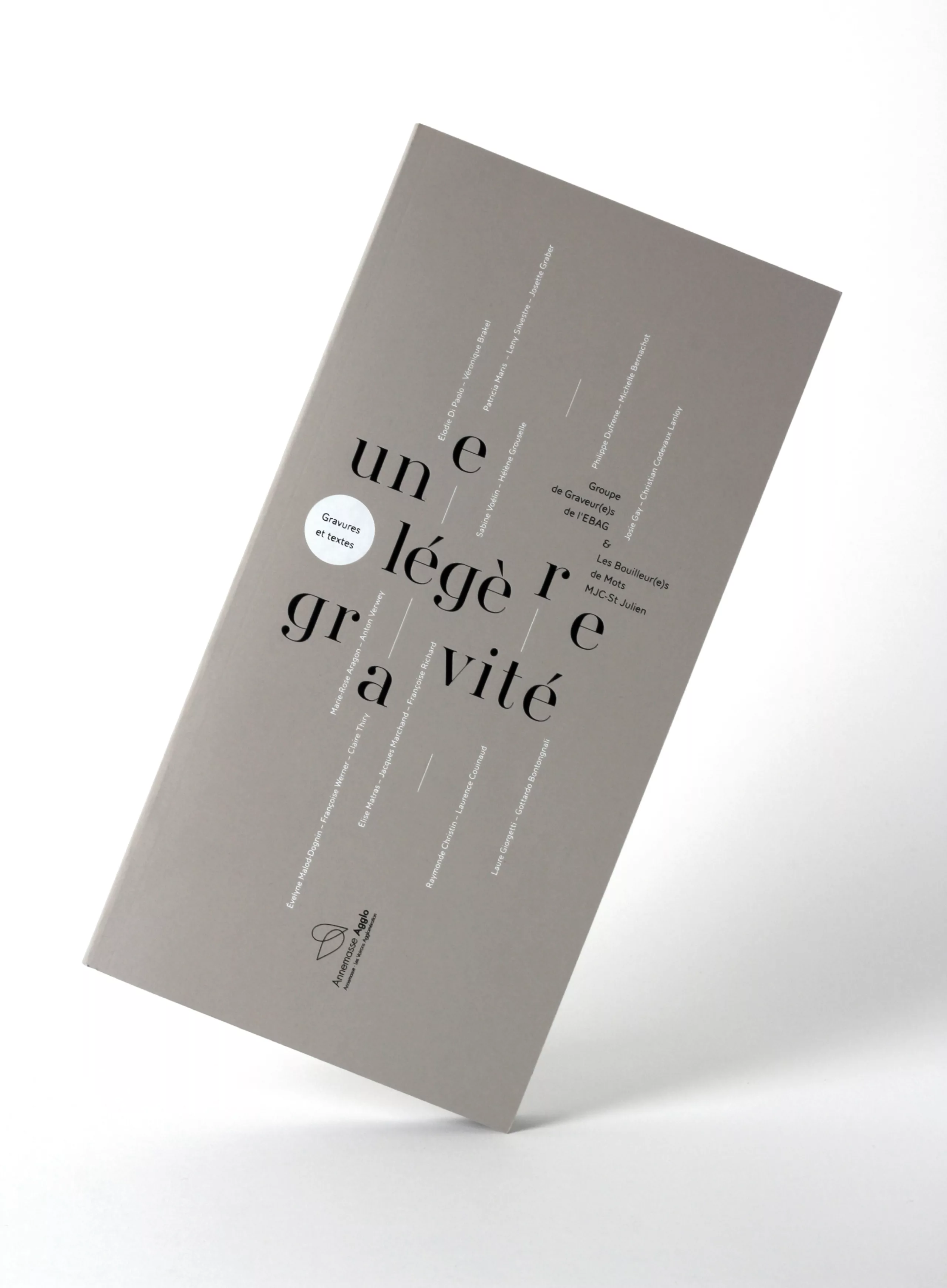 Ce catalogue regroupe les textes et gravures exposés lors du salon du livre d’Artistes de Lucinges en 2012. Le thème « Une Légère Gravité » fut choisi par les graveur(e)s qui ont livré aux « bouilleur(e)s de mots » leurs créations. Les textes sont alors venus se poser en écho aux gravures.