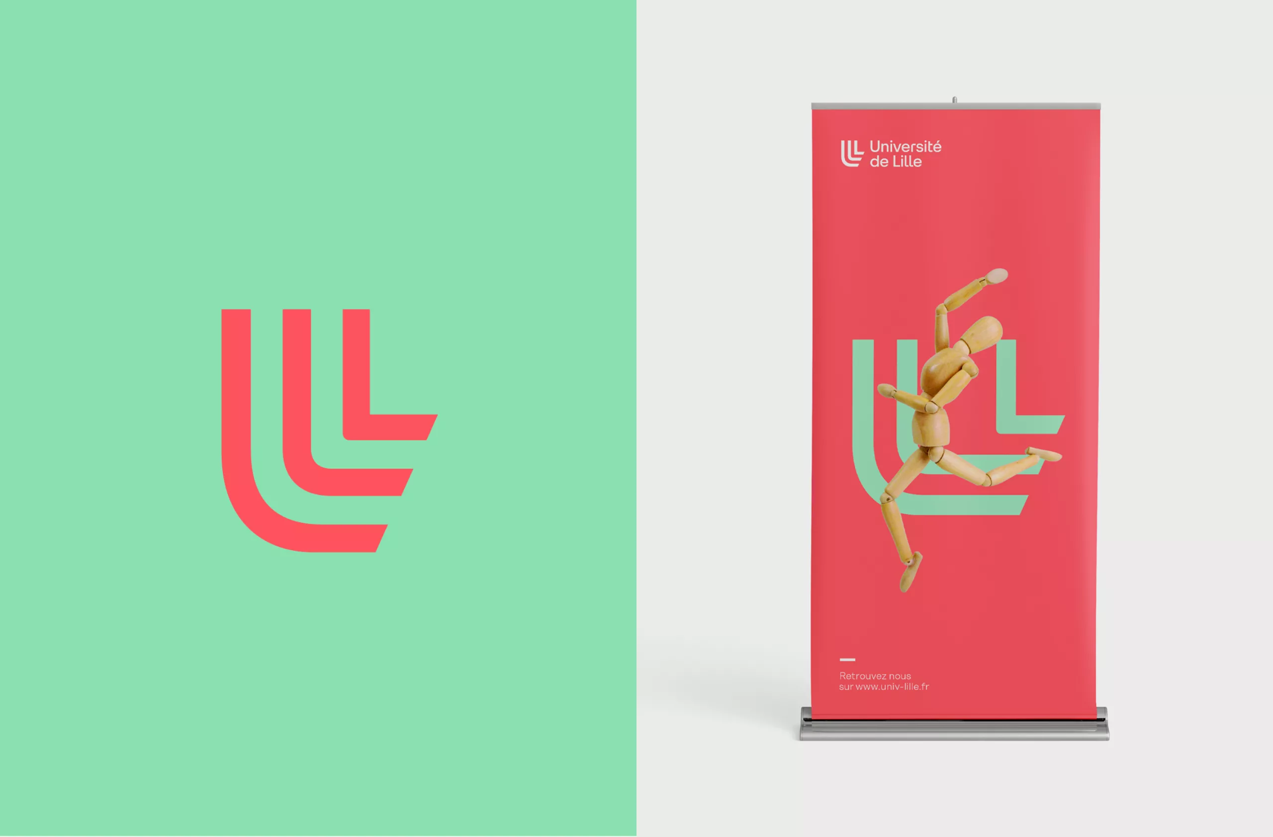 Le U incliné est lui résolument tourné vers l’avenir. En résulte un symbole ouvert, dynamique et accueillant qui incarne toutes les facettes de l’Université de Lille. Avec un dessin très vertical, le logotype fait référence à l’architecture du territoire et au patrimoine de la Métropole lilloise.