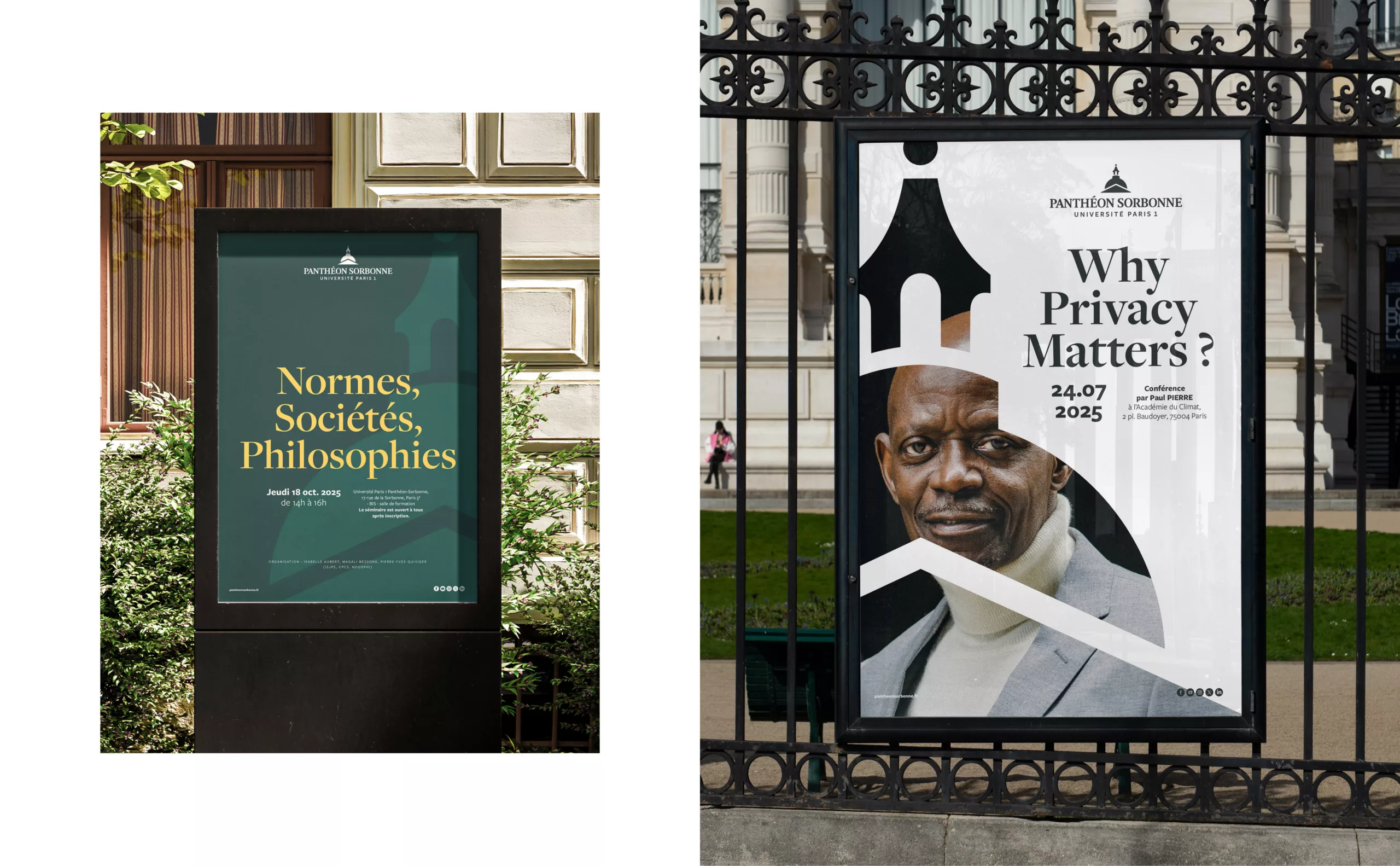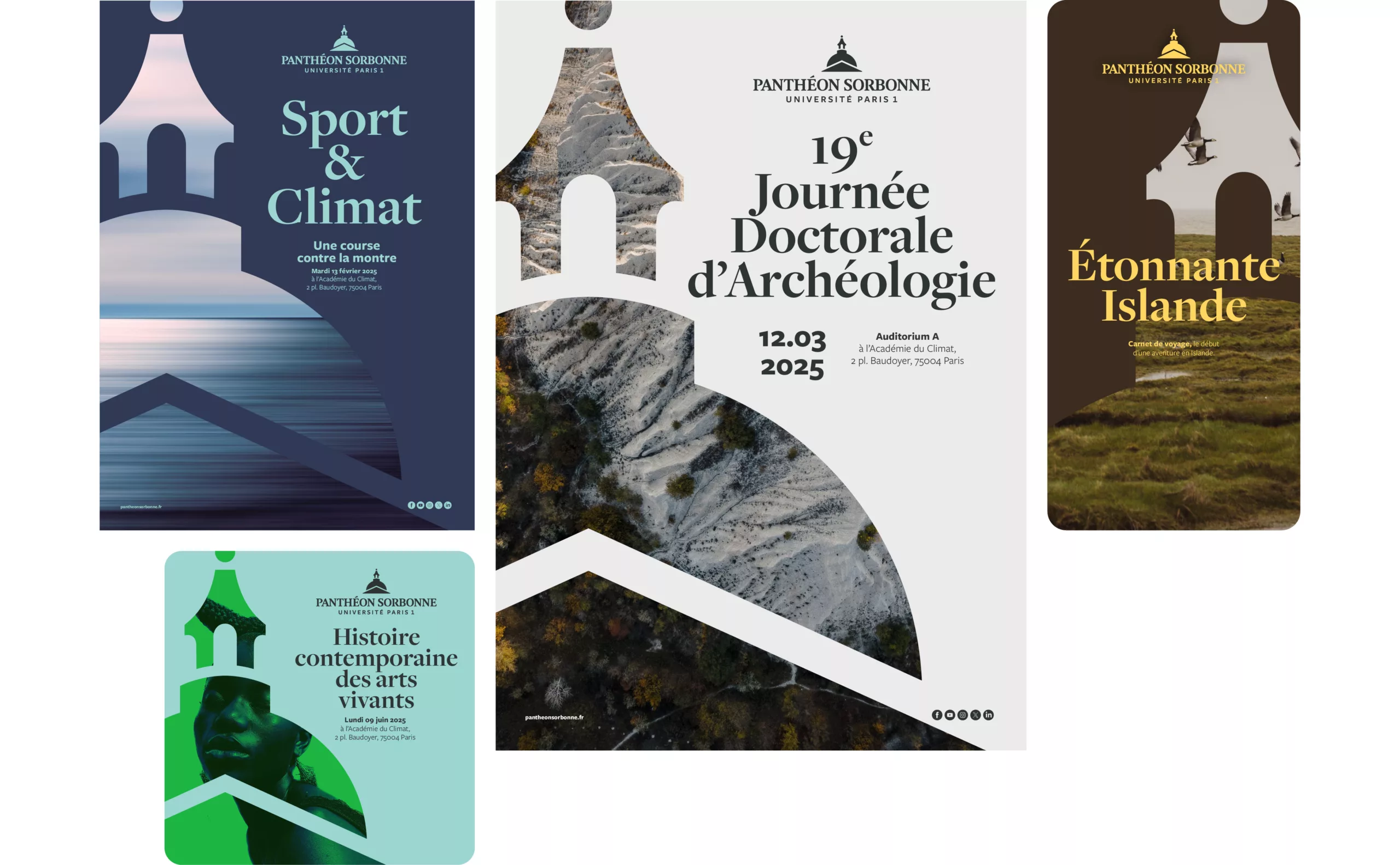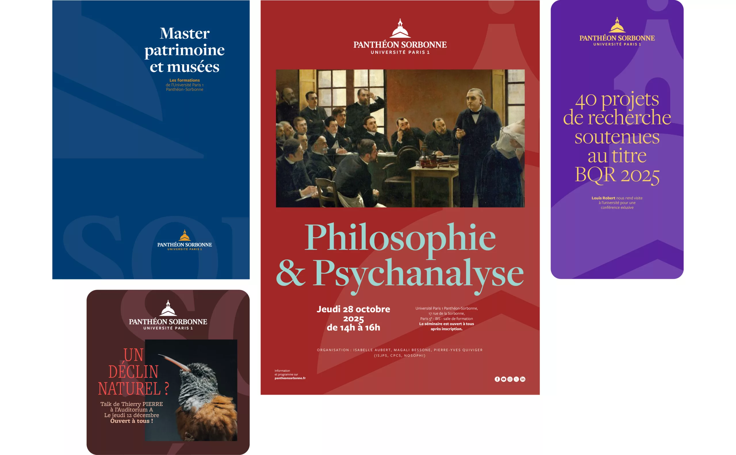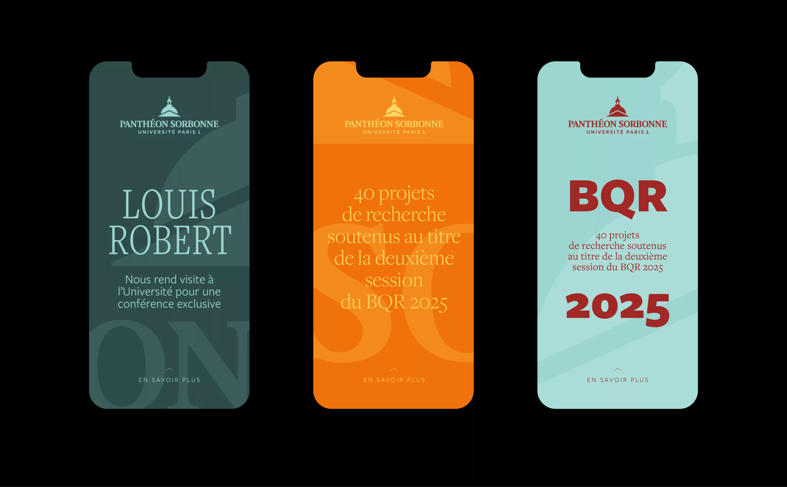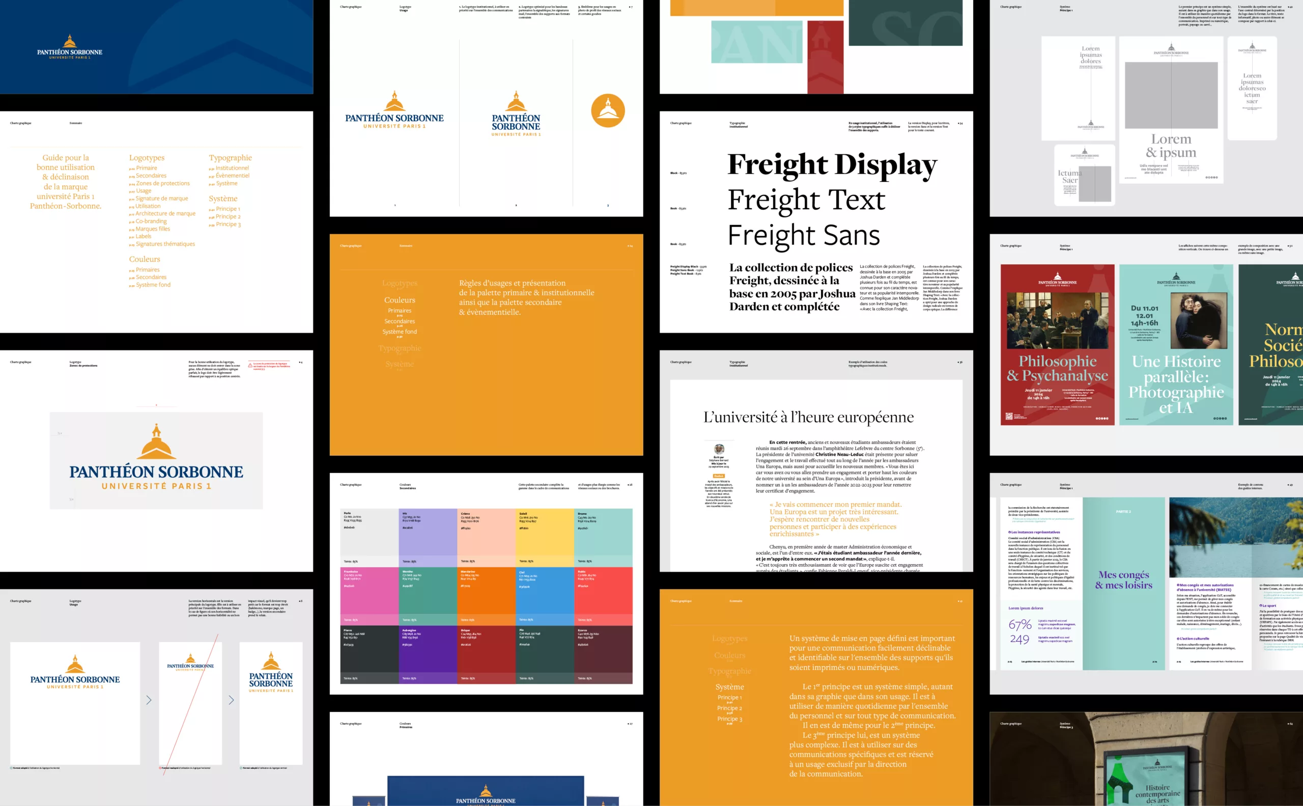 En 2024, Graphéine a accompagné l’Université Paris 1 Panthéon-Sorbonne pour la mise à jour de sa charte graphique. Le cahier des charges comprend une réflexion sur la responsivité du logotype. L’Université Paris 1 Panthéon-Sorbonne porte un héritage singulier entre histoire classique, conservatrice et esprit innovant, révolutionnaire. Deux caractères qui font l’histoire de l’université.