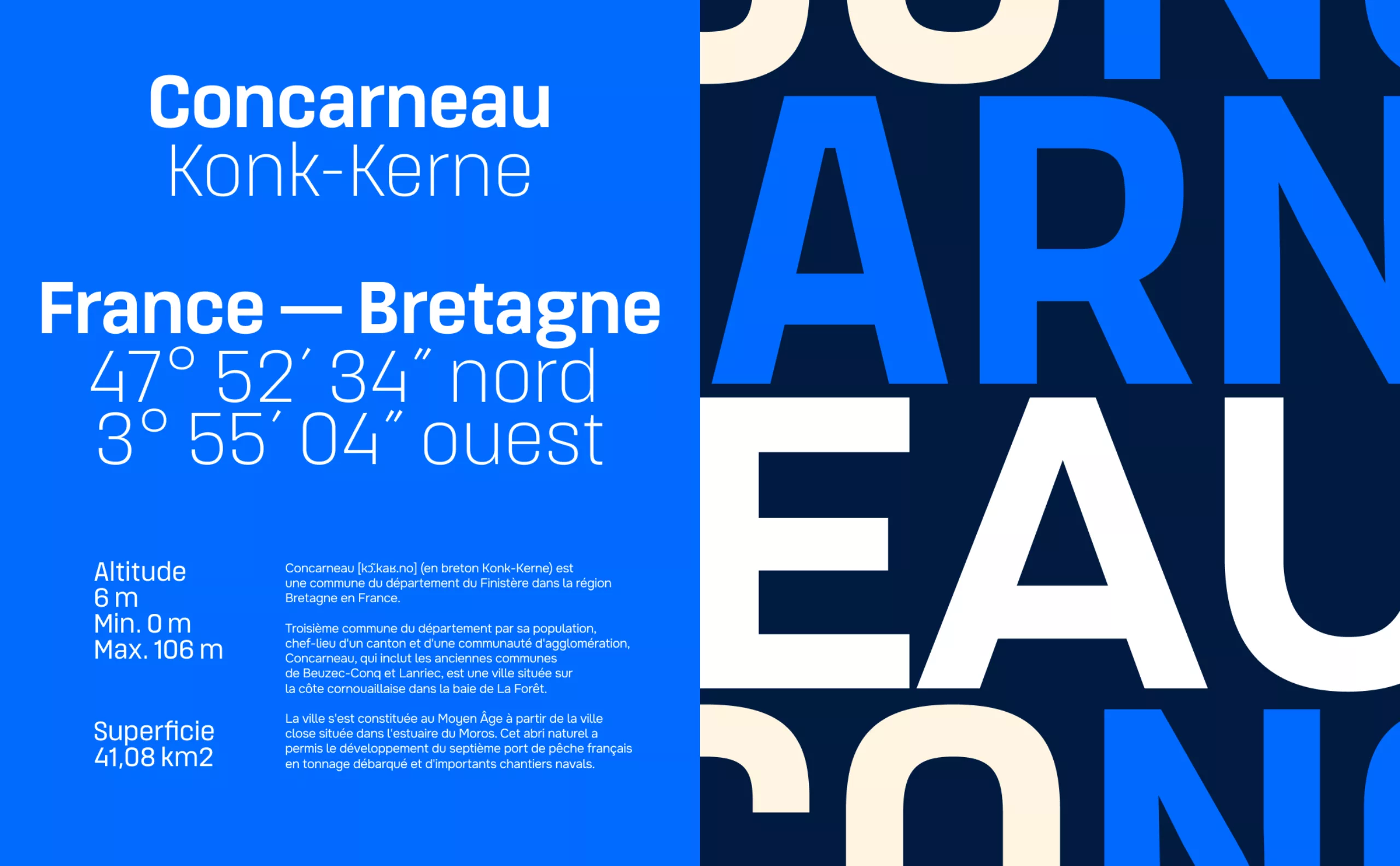 Avec l’accompagnement de Graphéine, la ville de Concarneau a engagé une démarche de refonte graphique destinée à exprimer ce qu’elle est et ce qu’elle aspire à devenir : une ville accueillante et créative, ouverte sur le monde, où tradition et innovation se rencontrent.