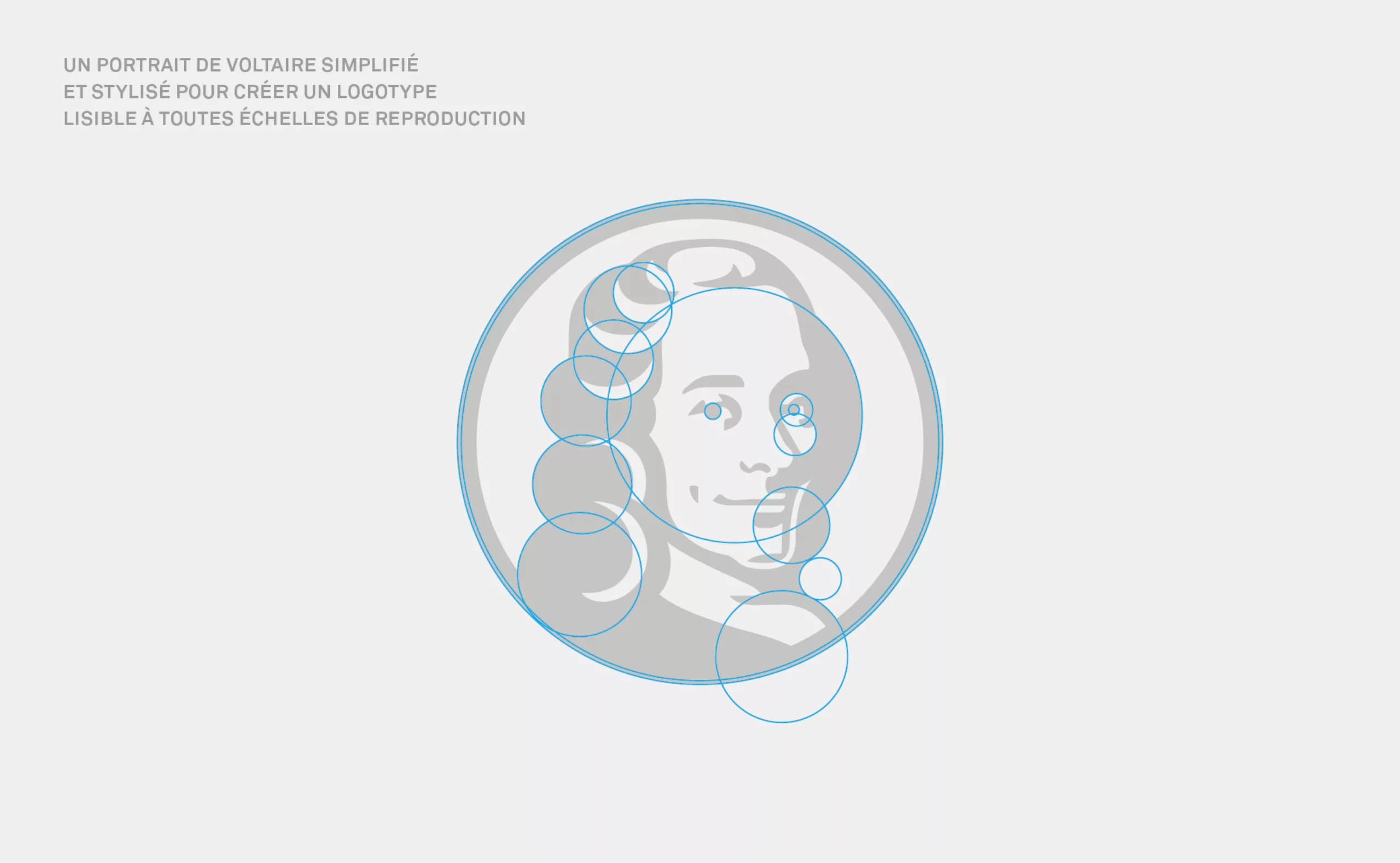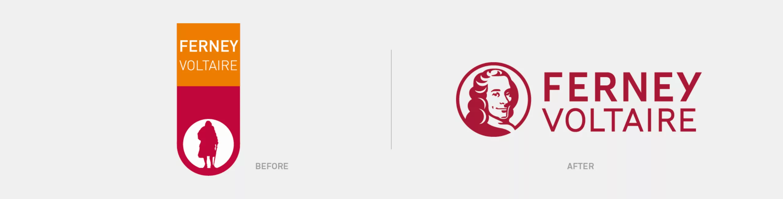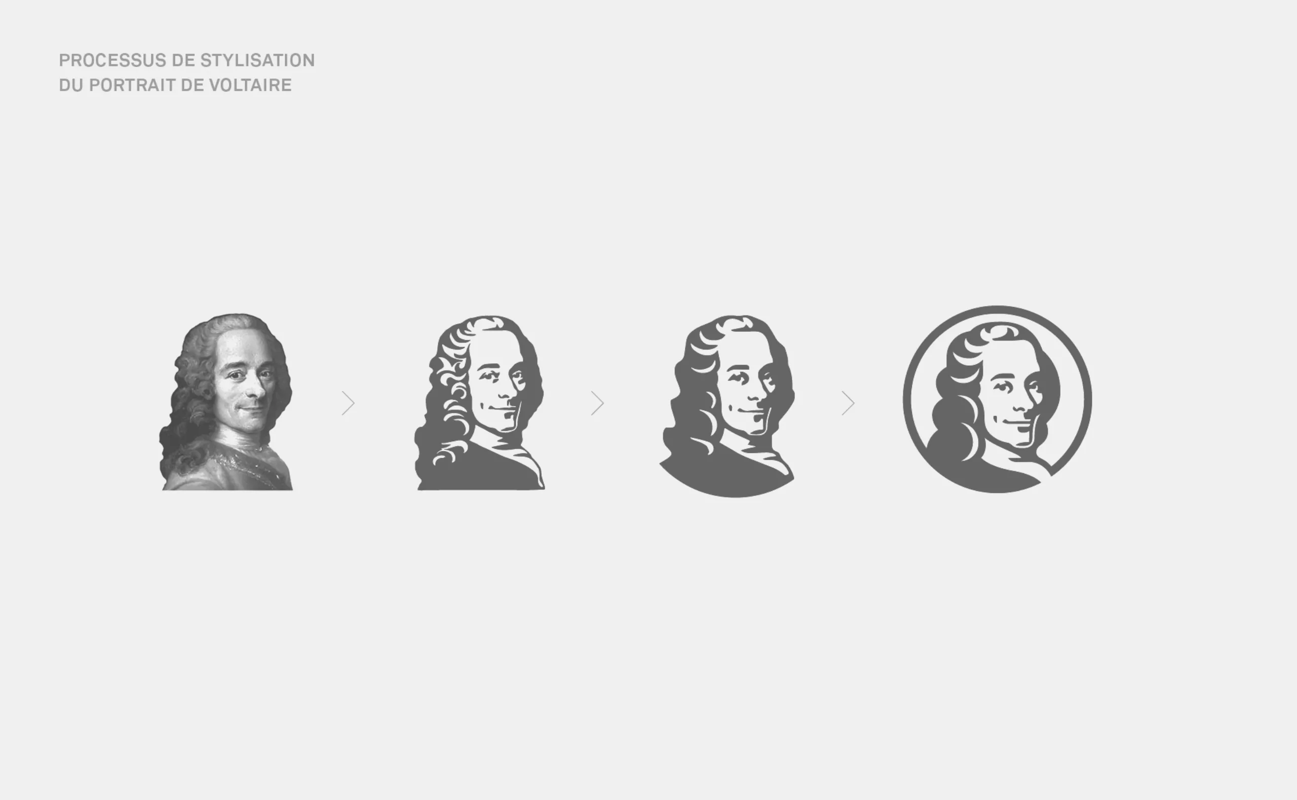 L’ancien logotype intégrait la silhouette du bienfaiteur inspiré d’une statue à son effigie présente au cœur de ville. Cependant, la posture de dos, courbée et reposant sur une canne donnait à voir un Voltaire vieillissant, loin de l’image moderne souhaitée.