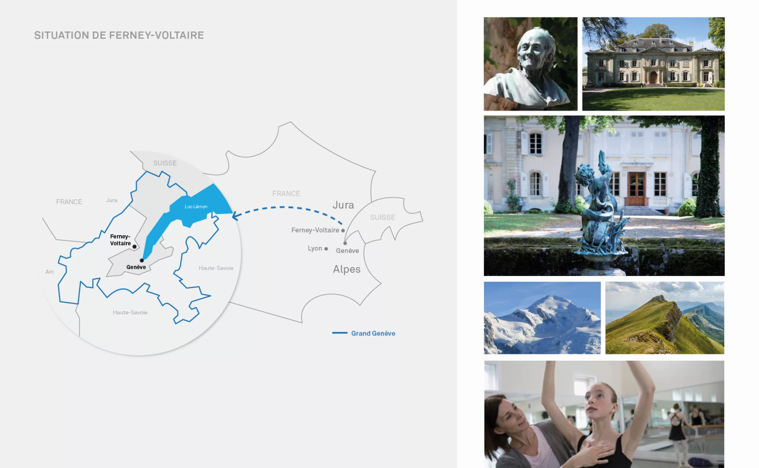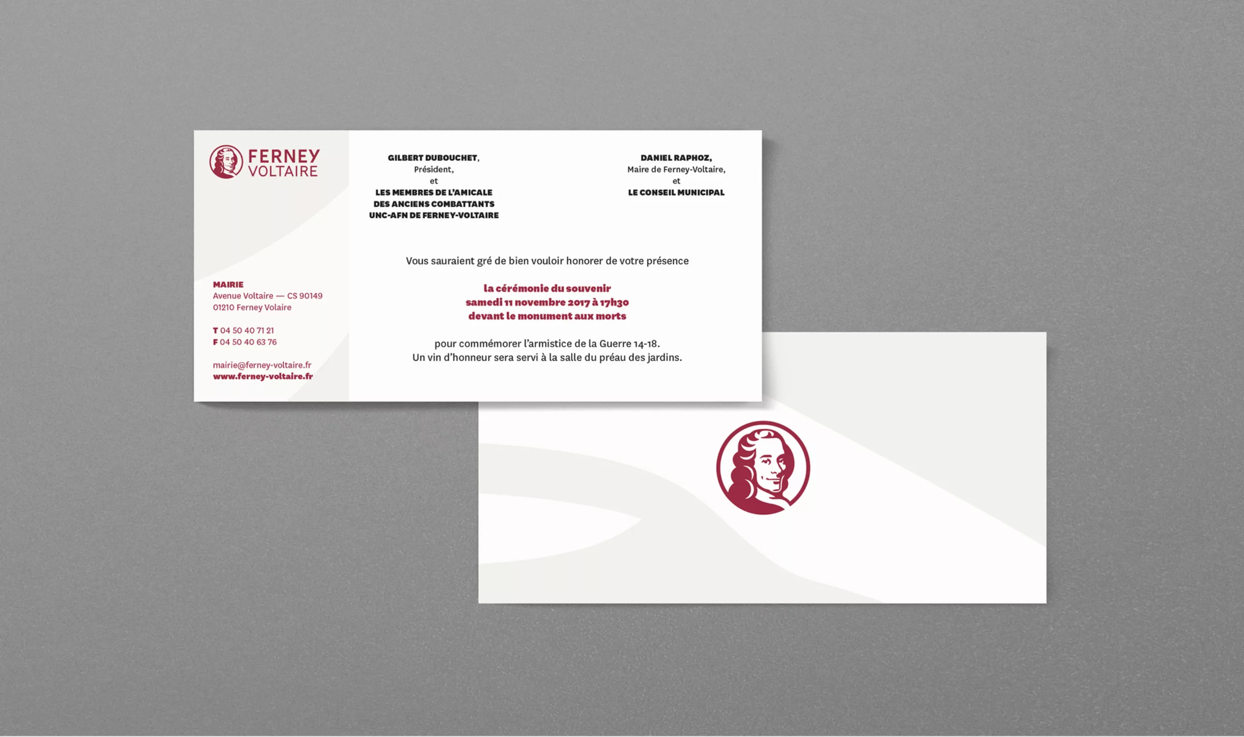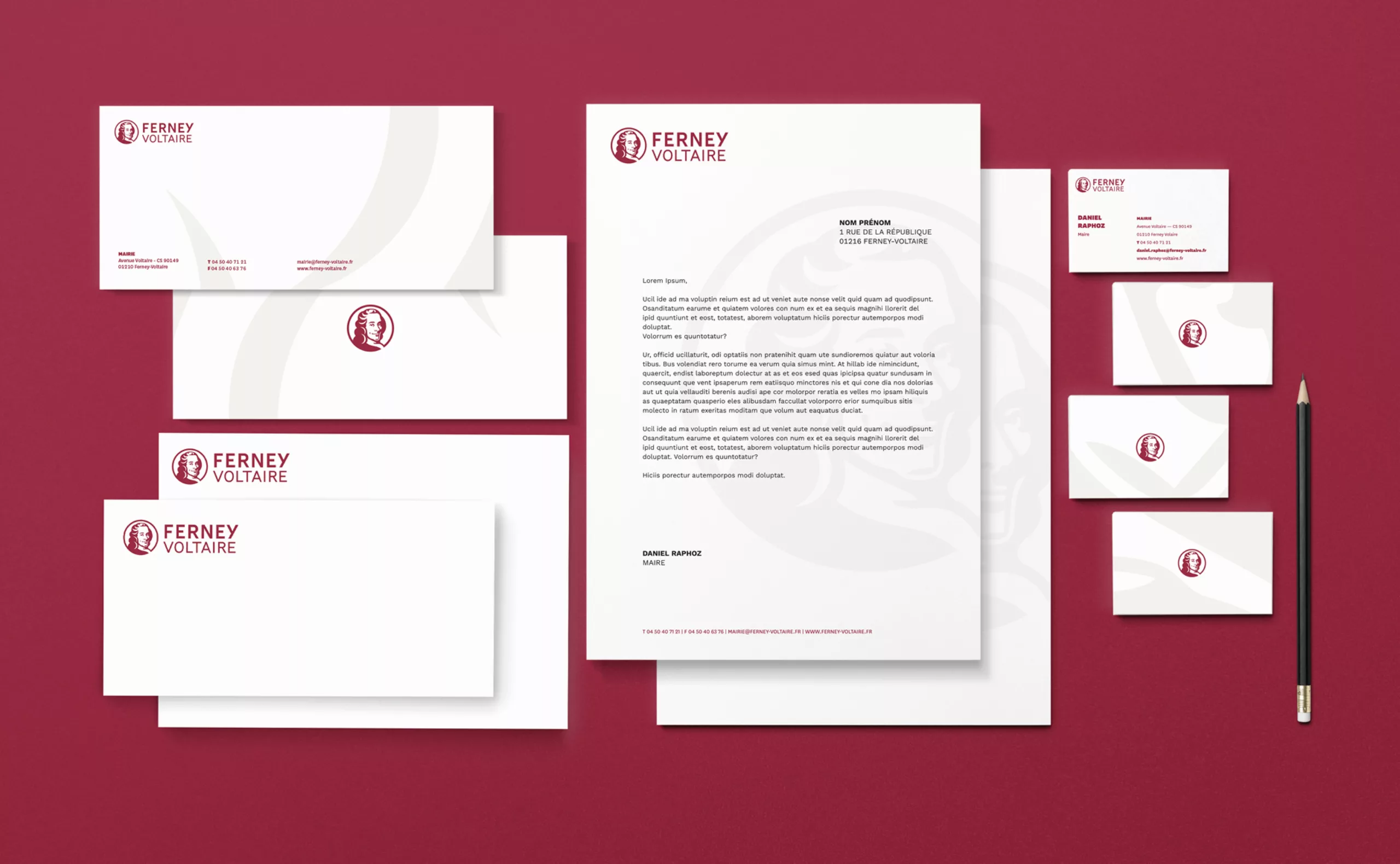 L’enjeu premier était de construire une identité contemporaine, en cohérence avec la croissance démographique, économique et culturelle de Ferney-Voltaire. Les Ferneysiens sont très attachés à l’histoire de la ville alors déjà mise en scène dans le précédent logotype. Ils souhaitaient refondre leur logotype en y conservant sa lecture patrimoniale.