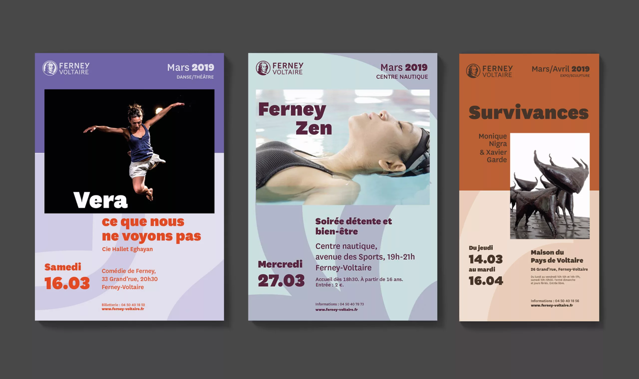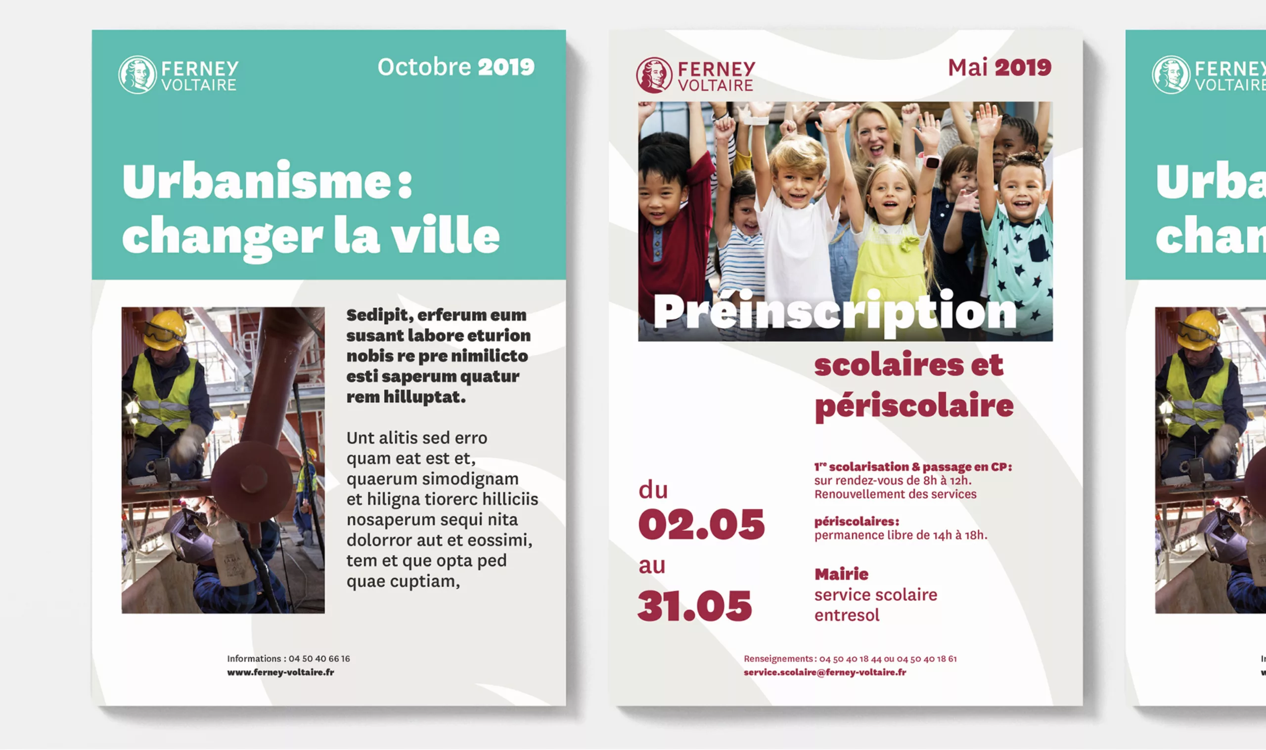 Graphéine a accompagné la ville de Ferney-Voltaire pour la refonte de son identité visuelle. L’ancienne charte graphique existait depuis 11 années et ne reflétait plus le dynamisme et l’attractivité d’une ville située aux portes de la Suisse. L’ensemble de la charte graphique et des supports de communication ont eux aussi été revus afin de permettre une meilleure lisibilité.