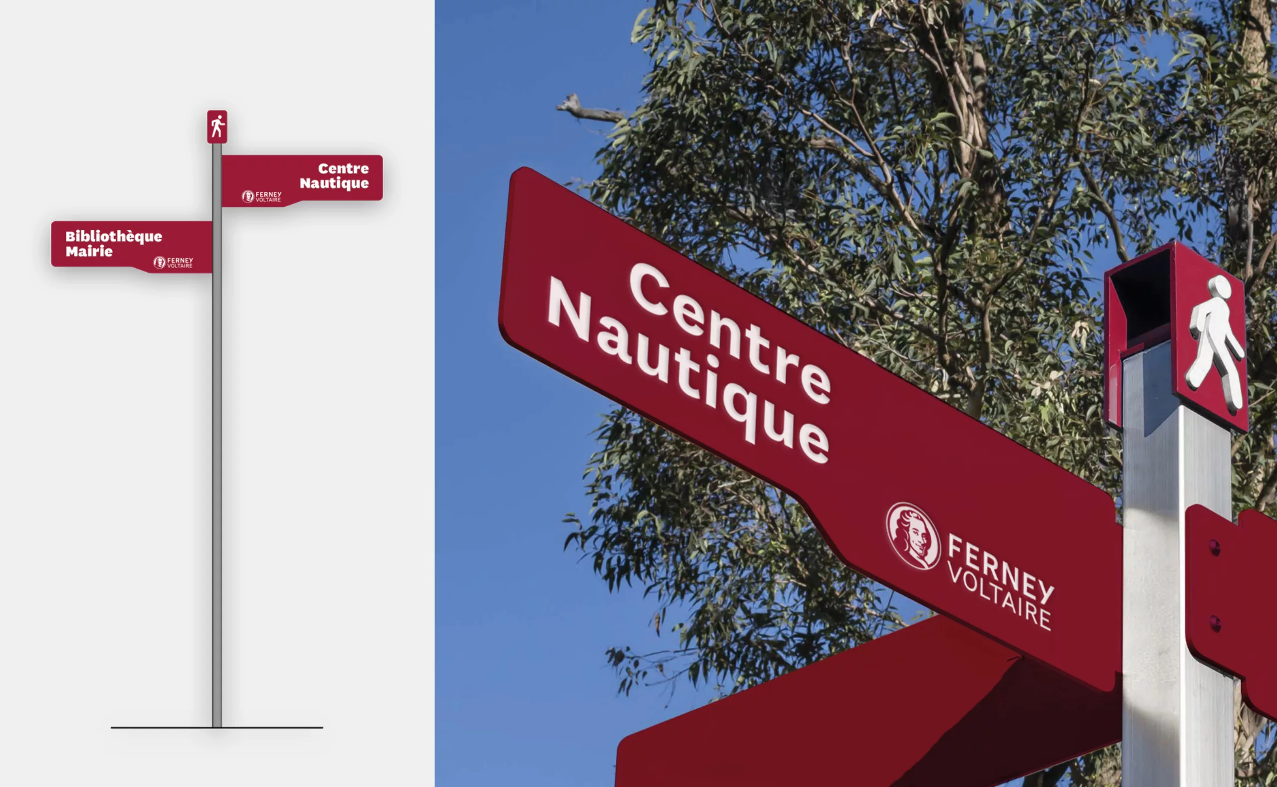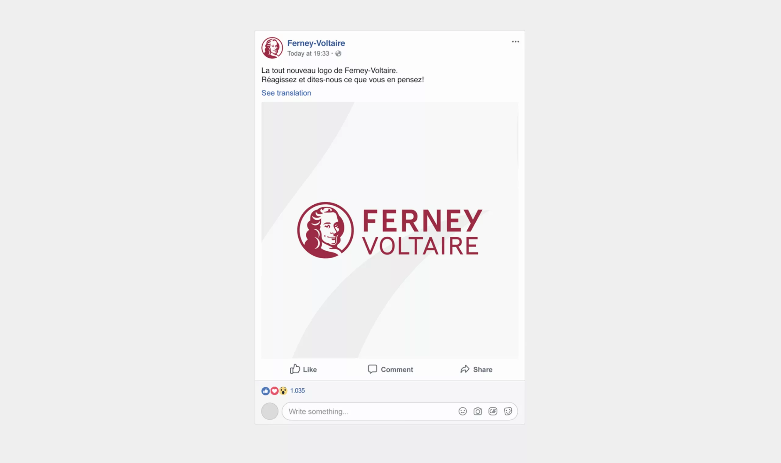 Notre travail de refonte s’est construit autour de l’idée de représenter cette figure emblématique de sorte qu’elle soit facilement reconnaissable, y compris par les non Ferneysiens n’ayant pas connaissance de la statue. Mais aussi, de donner une image plus dynamique, plus jeune, en accord avec les grands projets du territoire.